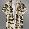 Gothic Plus Size Skull Bat Butterfly Cat Eye Palm Print Button Pocket Shirt For Men
