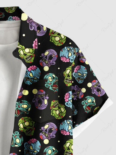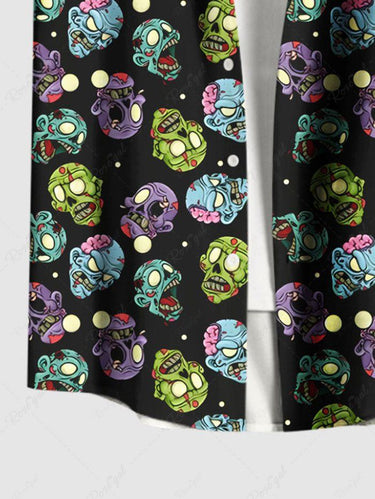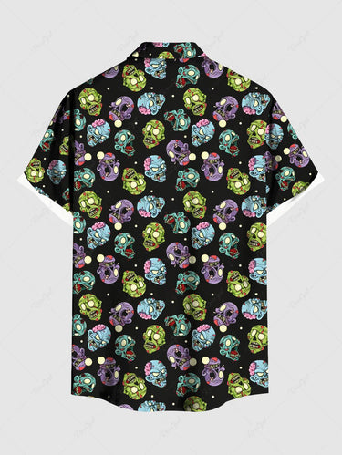 Gothic Plus Size Skull Monster Spotted Print Button Pocket Shirt For Men