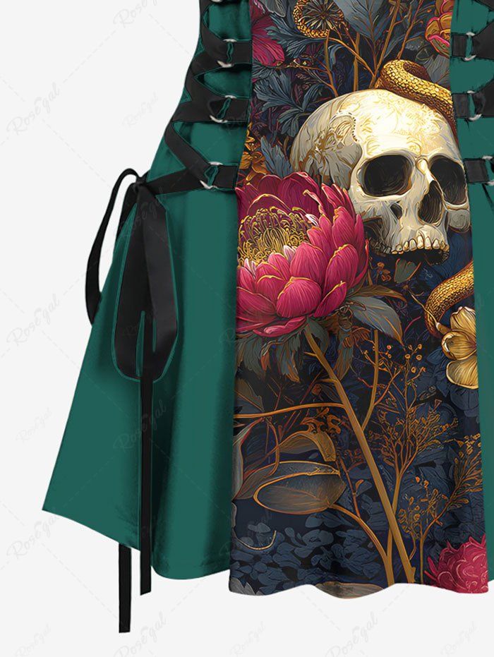 Gothic Skull Floral Snake Print Lace Up A Line Tank Dress
