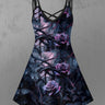 Gothic Plus Size Flower Leaves Print Crisscross Cami Dress