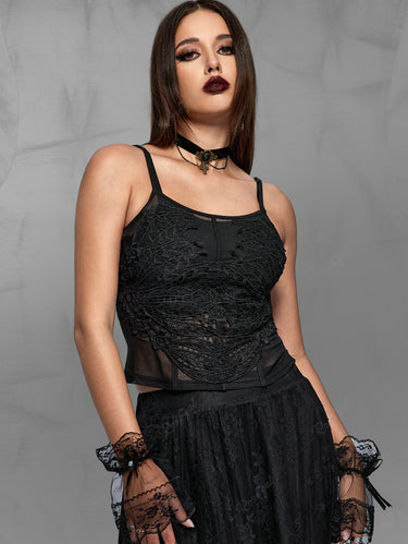 💗Lauren Loves💗Gothic Plus Size Guipure Lace Applique Sheer Mesh Camisole