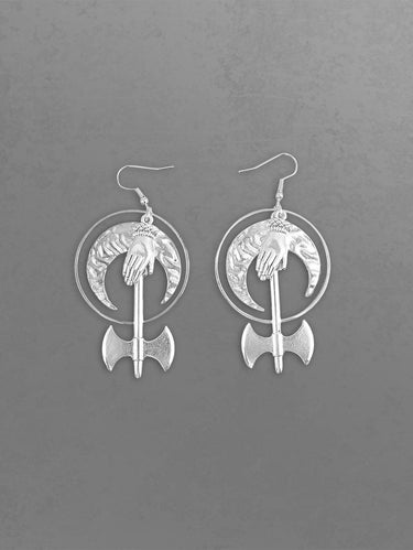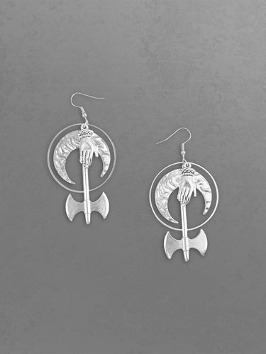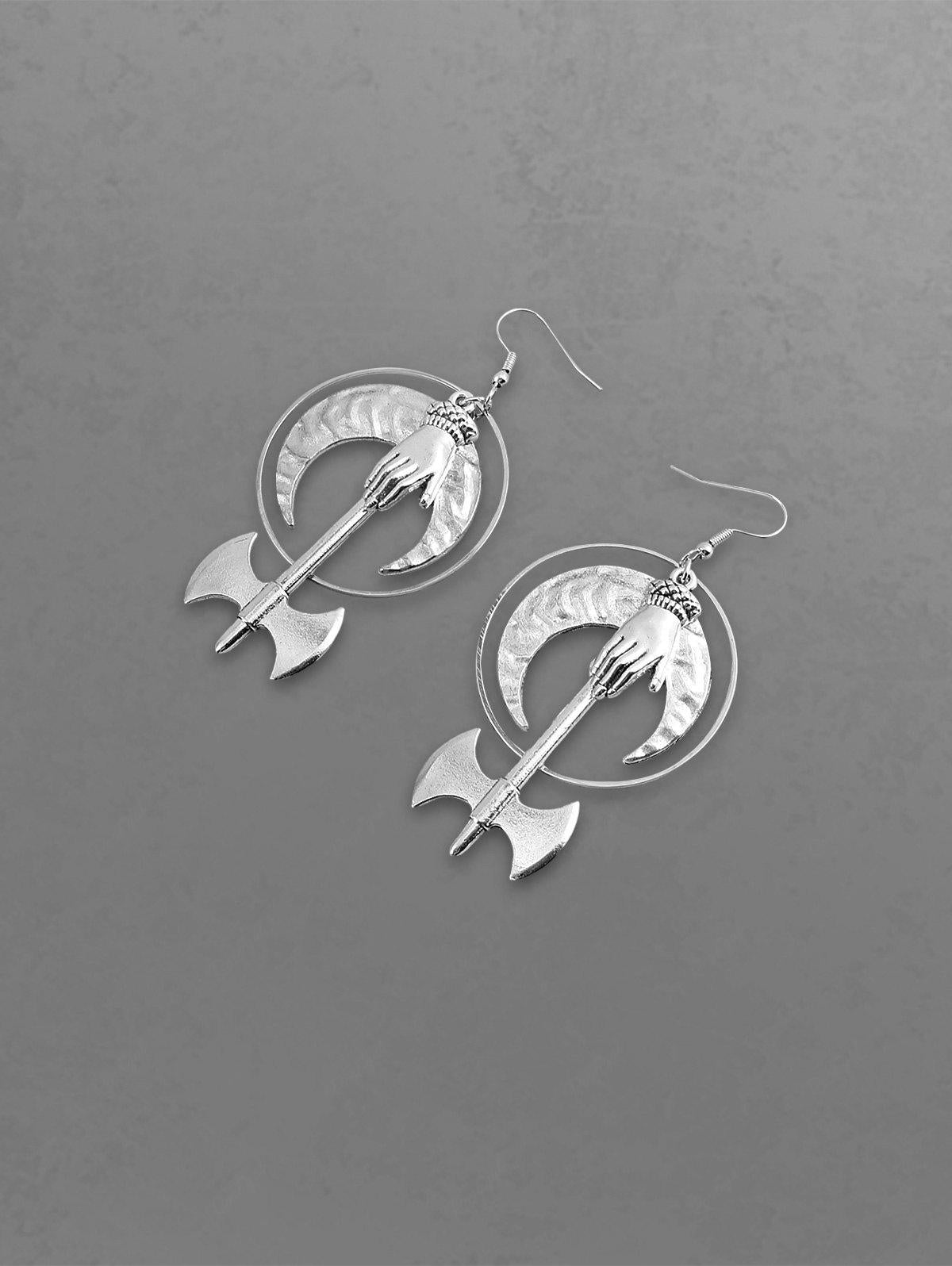 Gothic Moon Ax Drop Earrings