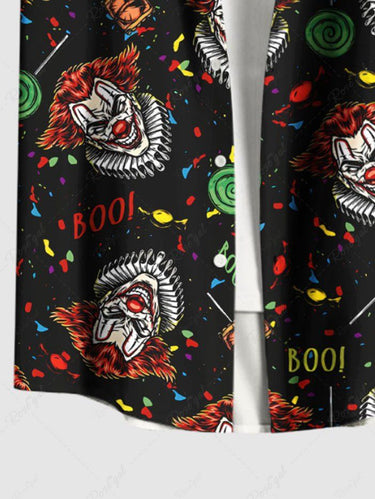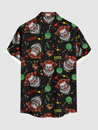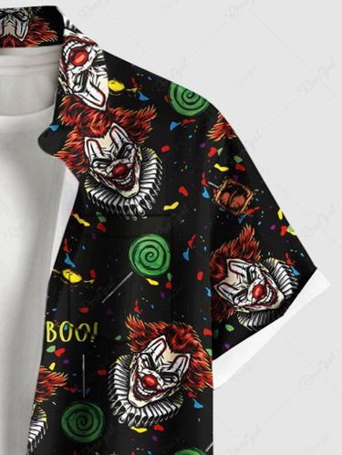 Gothic Plus Size Clown Lollipop Candy Letters Print Button Pocket Shirt For Men