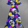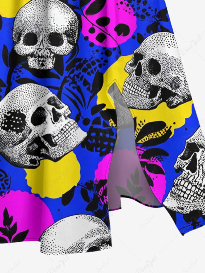 Gothic Plus Size Skull Leaf Branch Print Split Pocket A Line Midi Dress