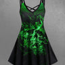 Gothic Plus Size Skull Fire Flame Print Ombre Crisscross A Line Cami Dress
