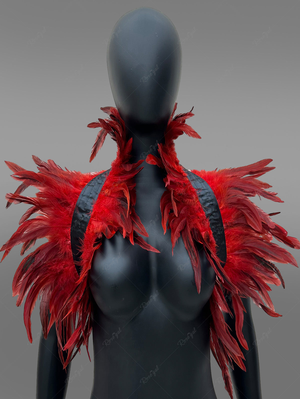 Halloween Gothic Feather Shrug Cape Back Tied Wrap