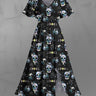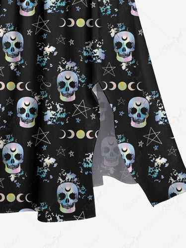 Gothic Plus Size Skulls Moon Sun Star Galaxy Print Split Midi Dress