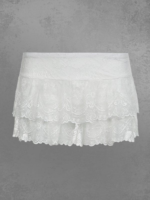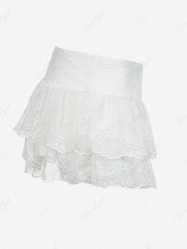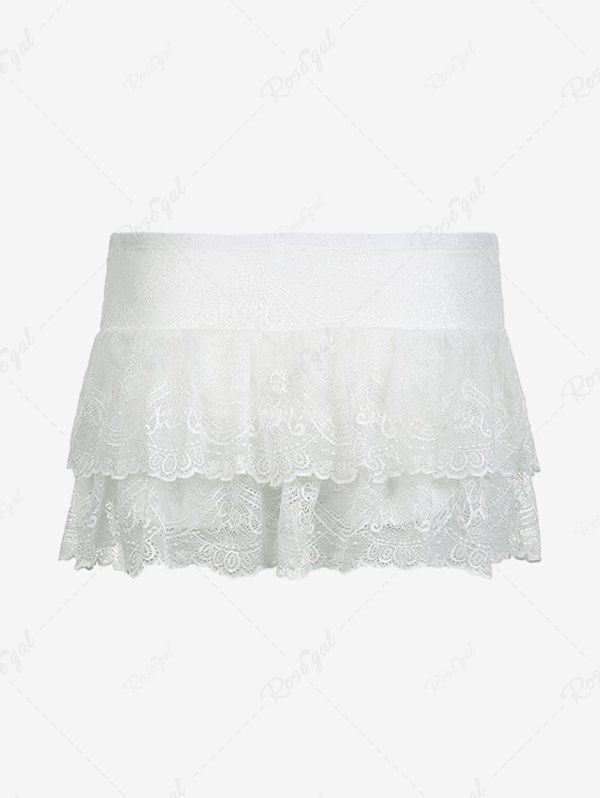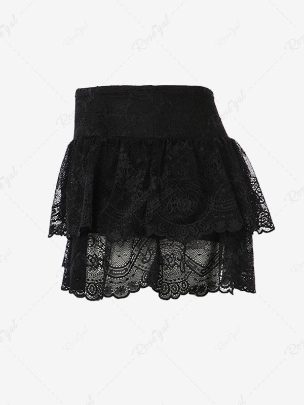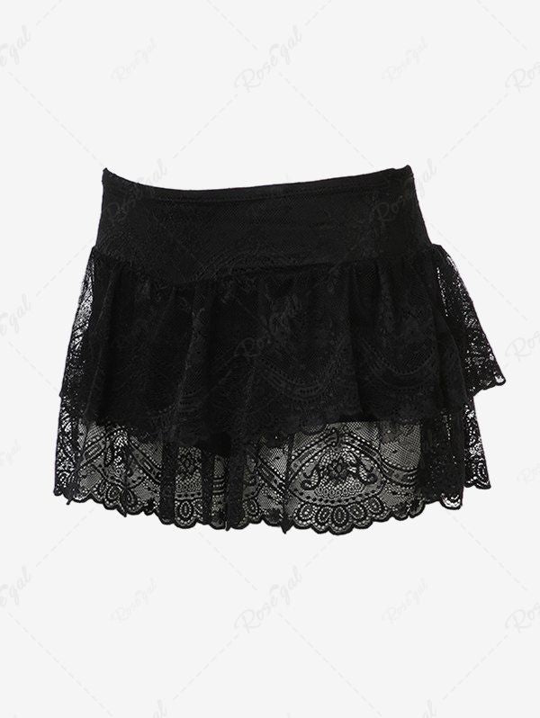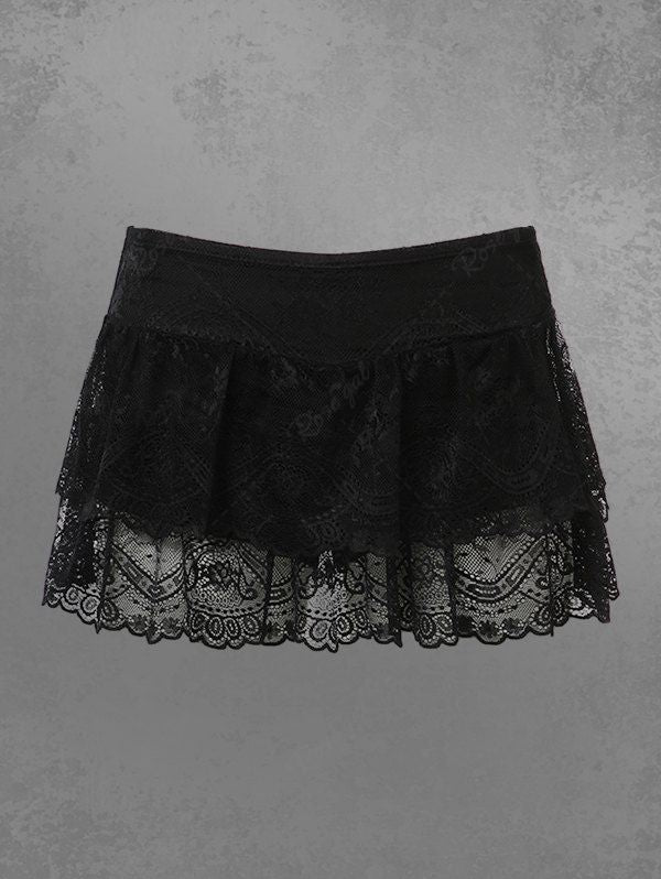 Gothic Floral Lace Sheer Layered A Line Mini Skirt