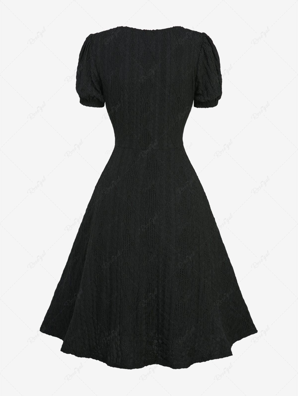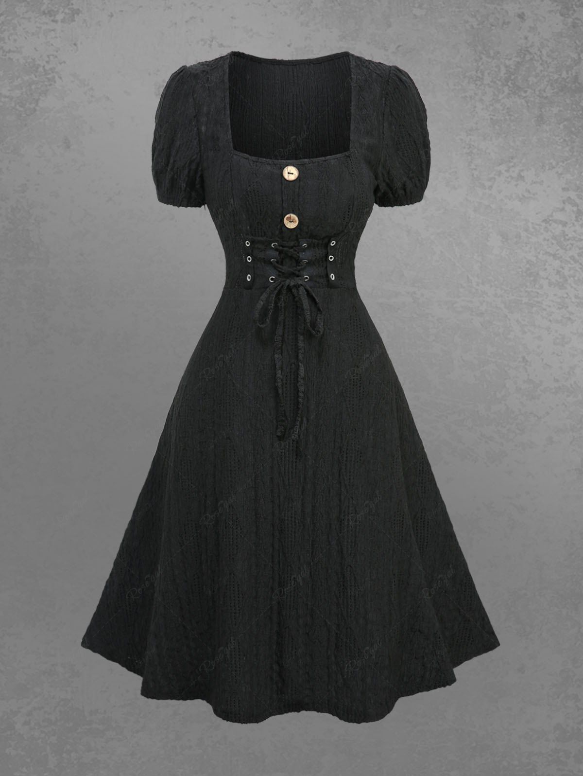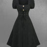 Gothic Lace Up Textured Mock Button A Line Dress