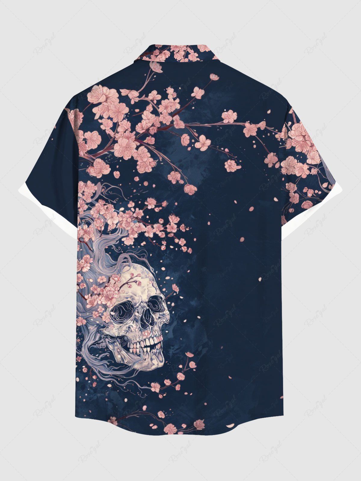Gothic Plus Size Skull Tree Branch Flower Print Button Pocket Shirt For Men