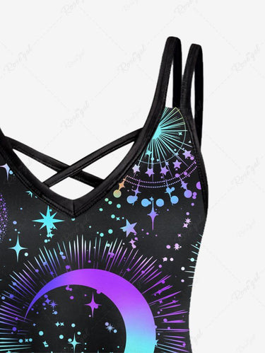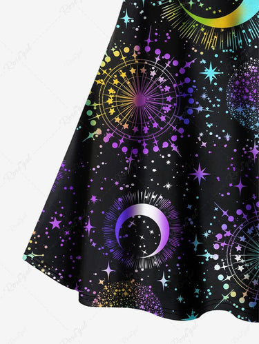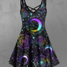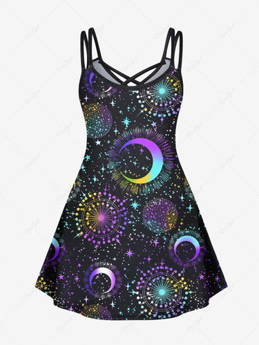 Gothic Plus Size Colorful Glitter Ombre Moon Star Galaxy Print Crisscross A Line Cami Dress