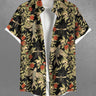 Gothic Plus Size Skull Fish Rose Flower Leaf Branch Print Halloween Button Pocket Shirt For Men