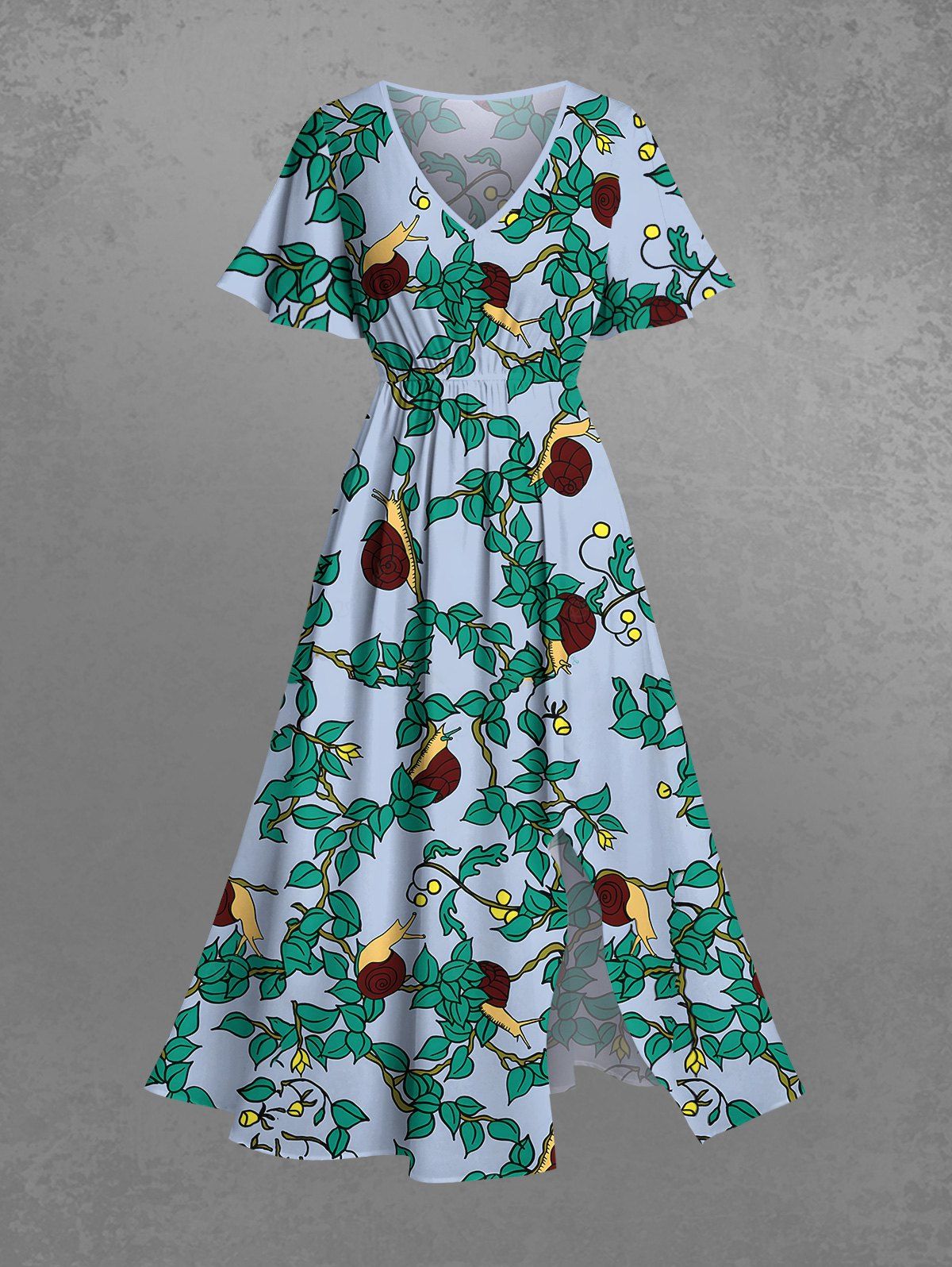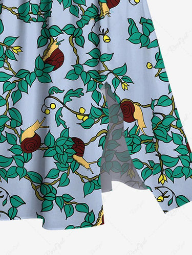 Gothic Plus Size Branch Leaf Snail Print Split Pocket A Line Midi Dress