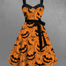 Gothic Plus Size Pumpkin Lantern Print Buttons Turn Down Collar Halloween Dress With Belt