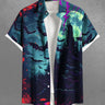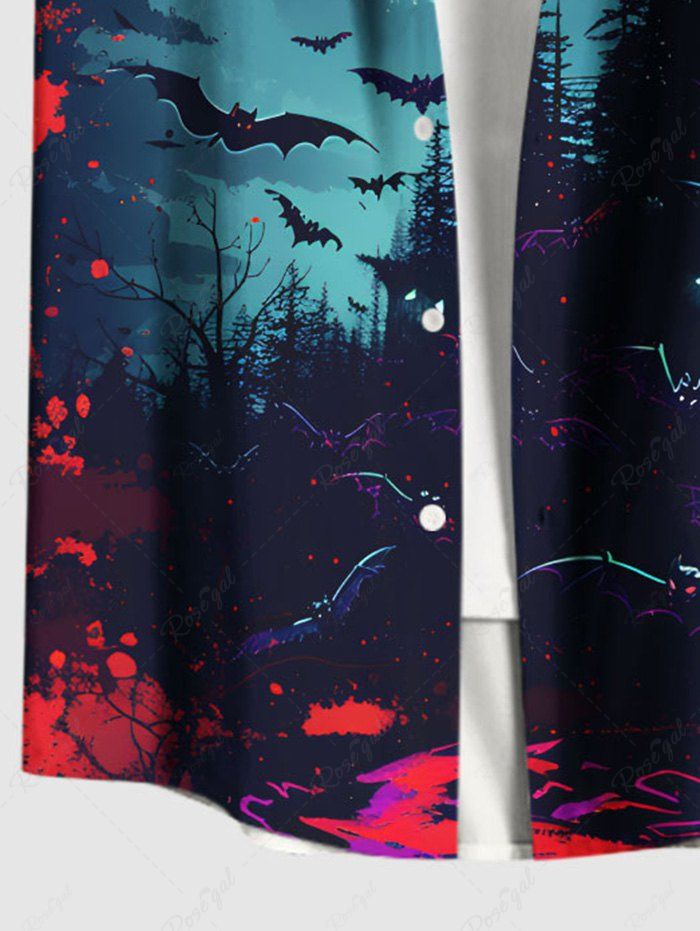 Gothic Plus Size Bat Castle Moon Ombre Galaxy Print Halloween Button Pocket Shirt For Men