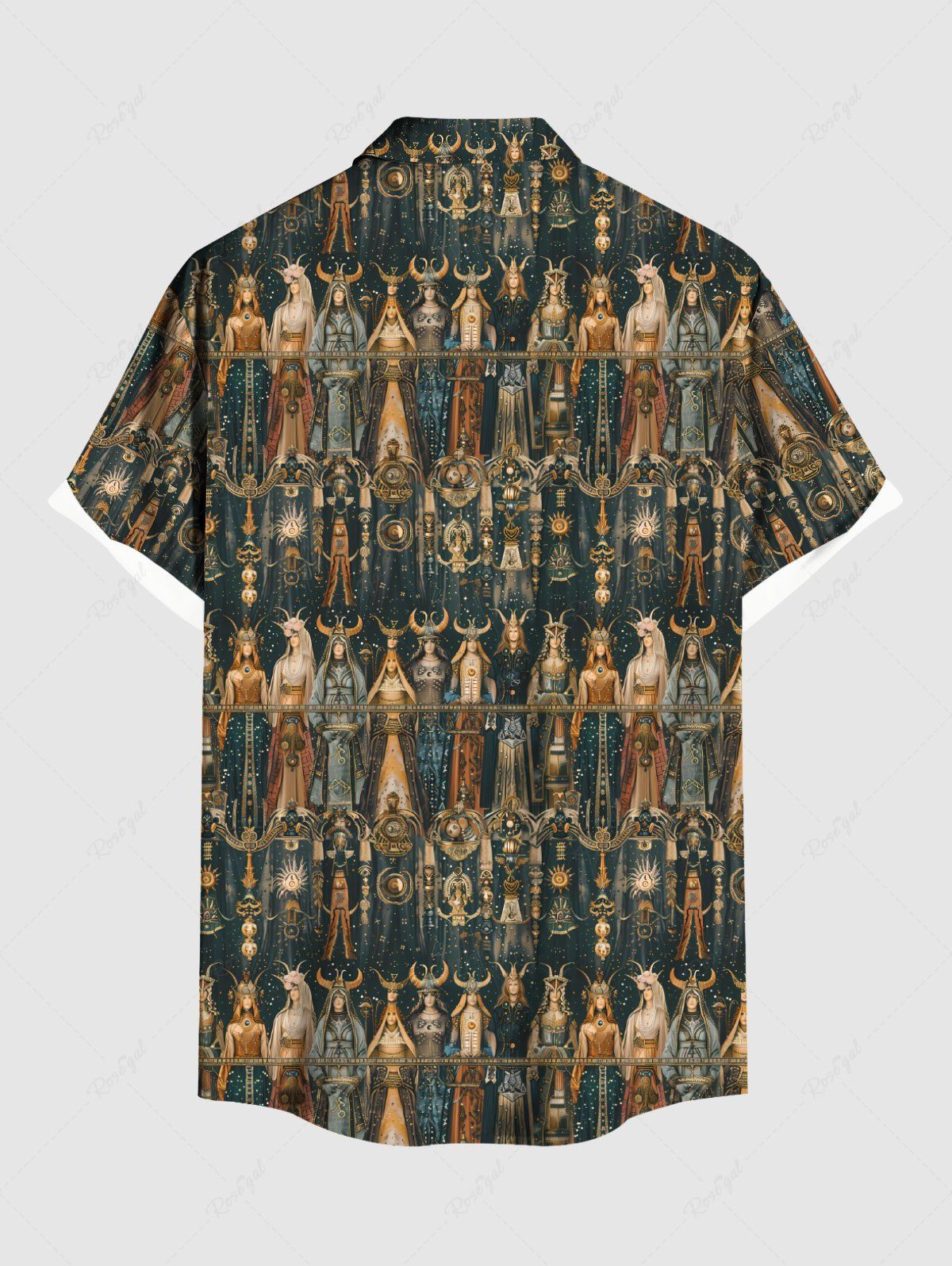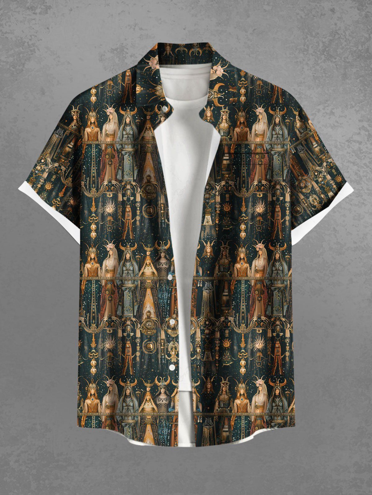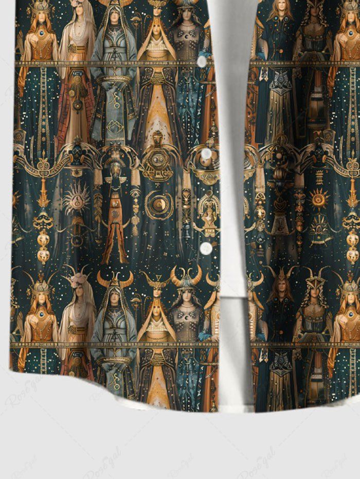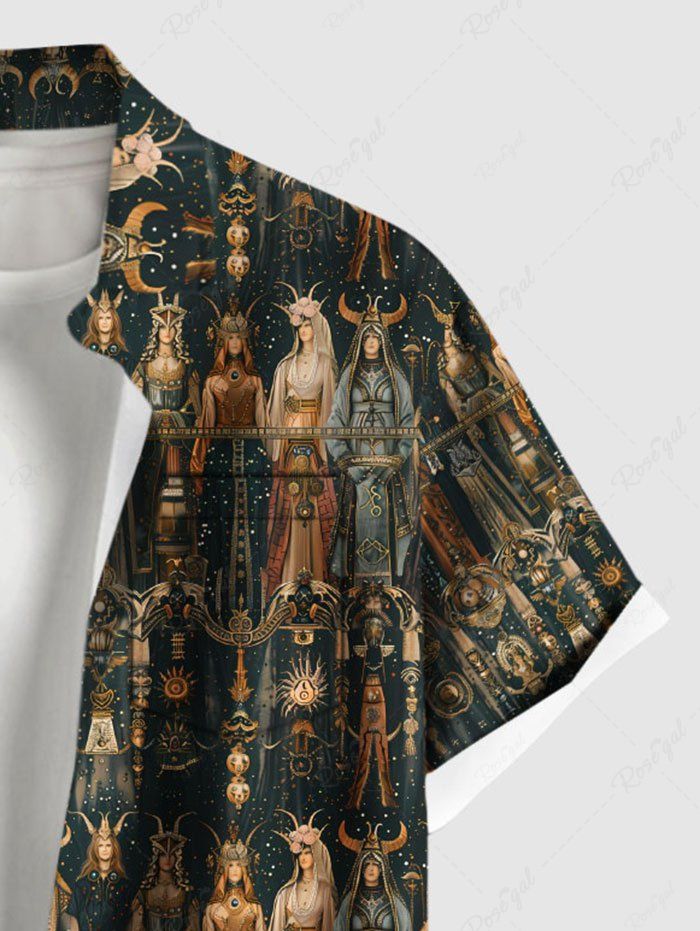 Gothic Plus Size Greek Mythology Constellations Priestess Print Buttons Pocket Shirt For Men