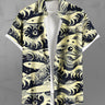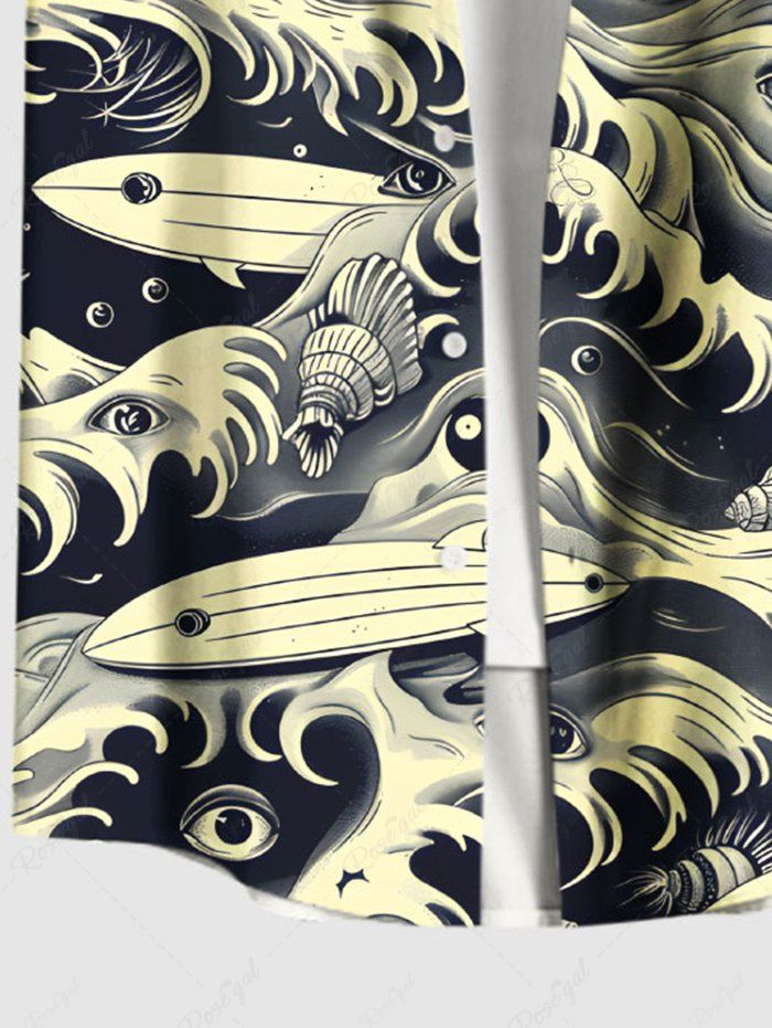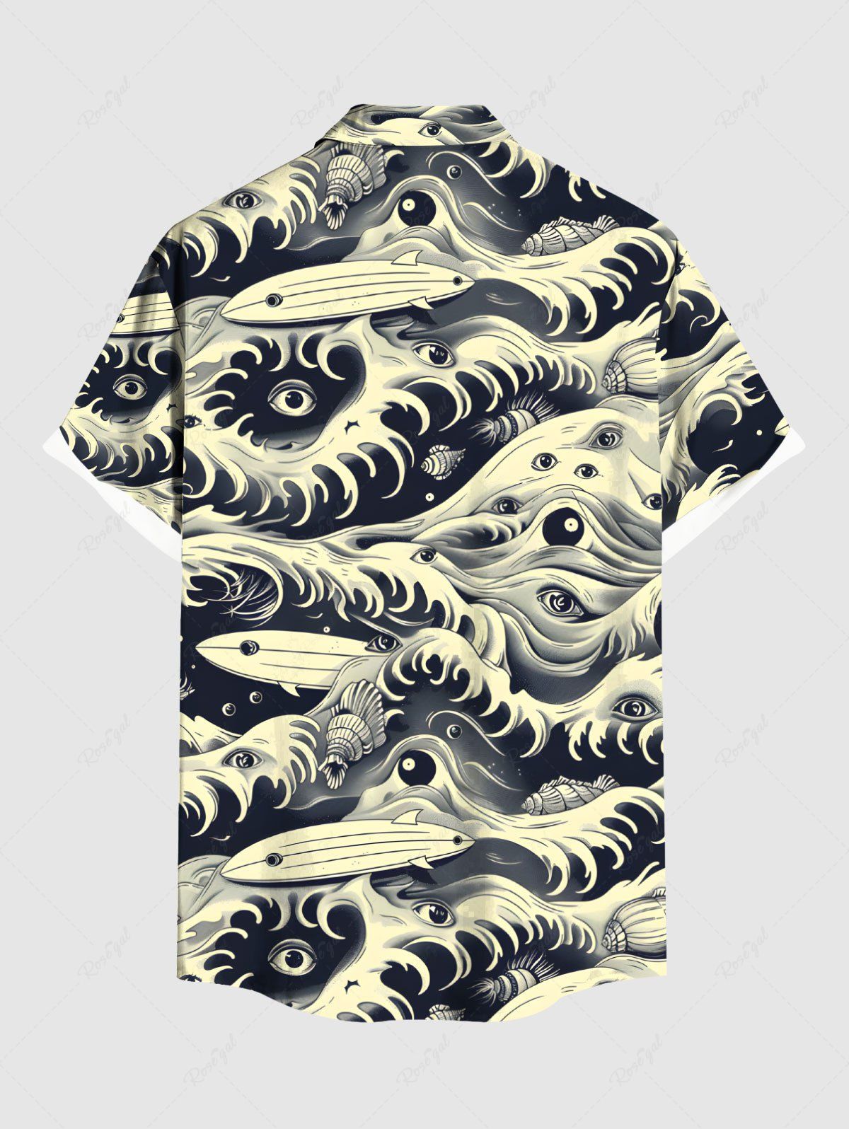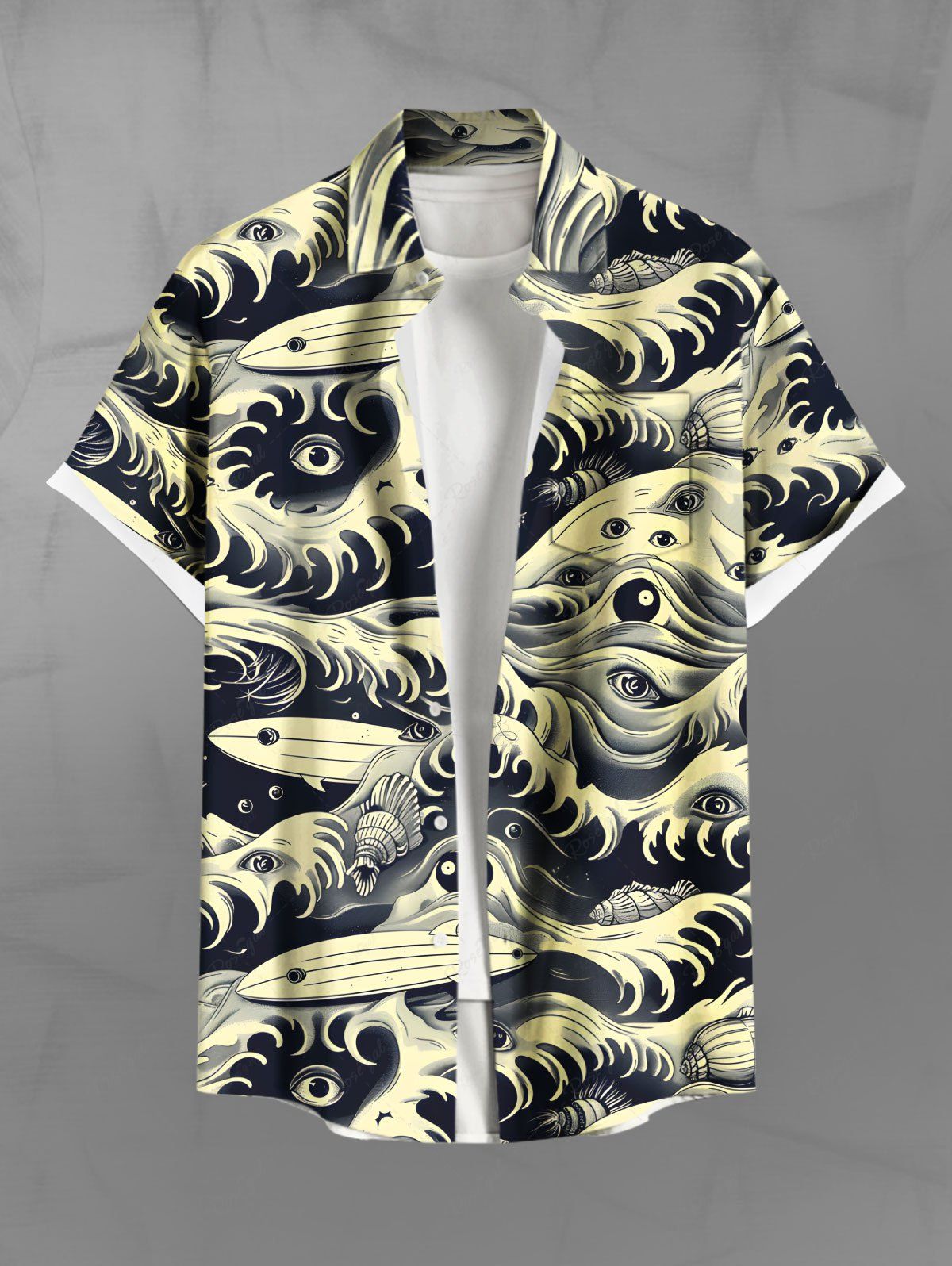 Gothic Plus Size Halloween Sea Waves Eyes Sharks Print Buttons Pocket Shirt For Men