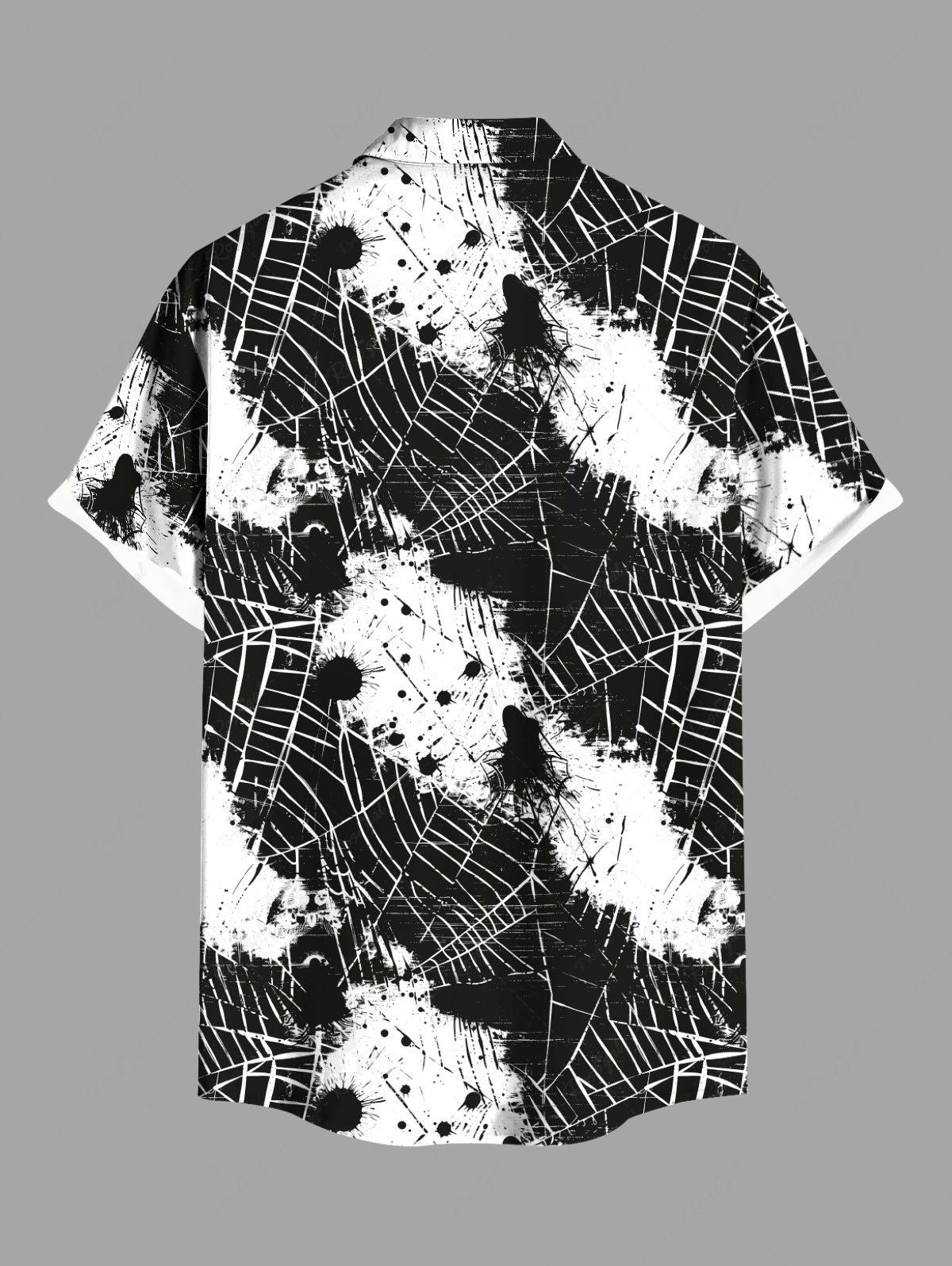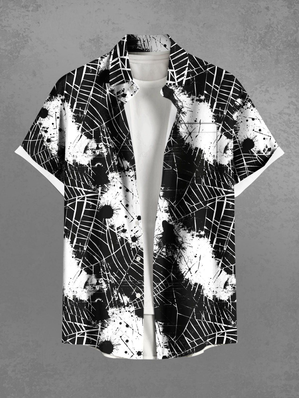 Gothic Plus Size Halloween Spider Web Paint Splatter Print Buttons Pocket Shirt For Men