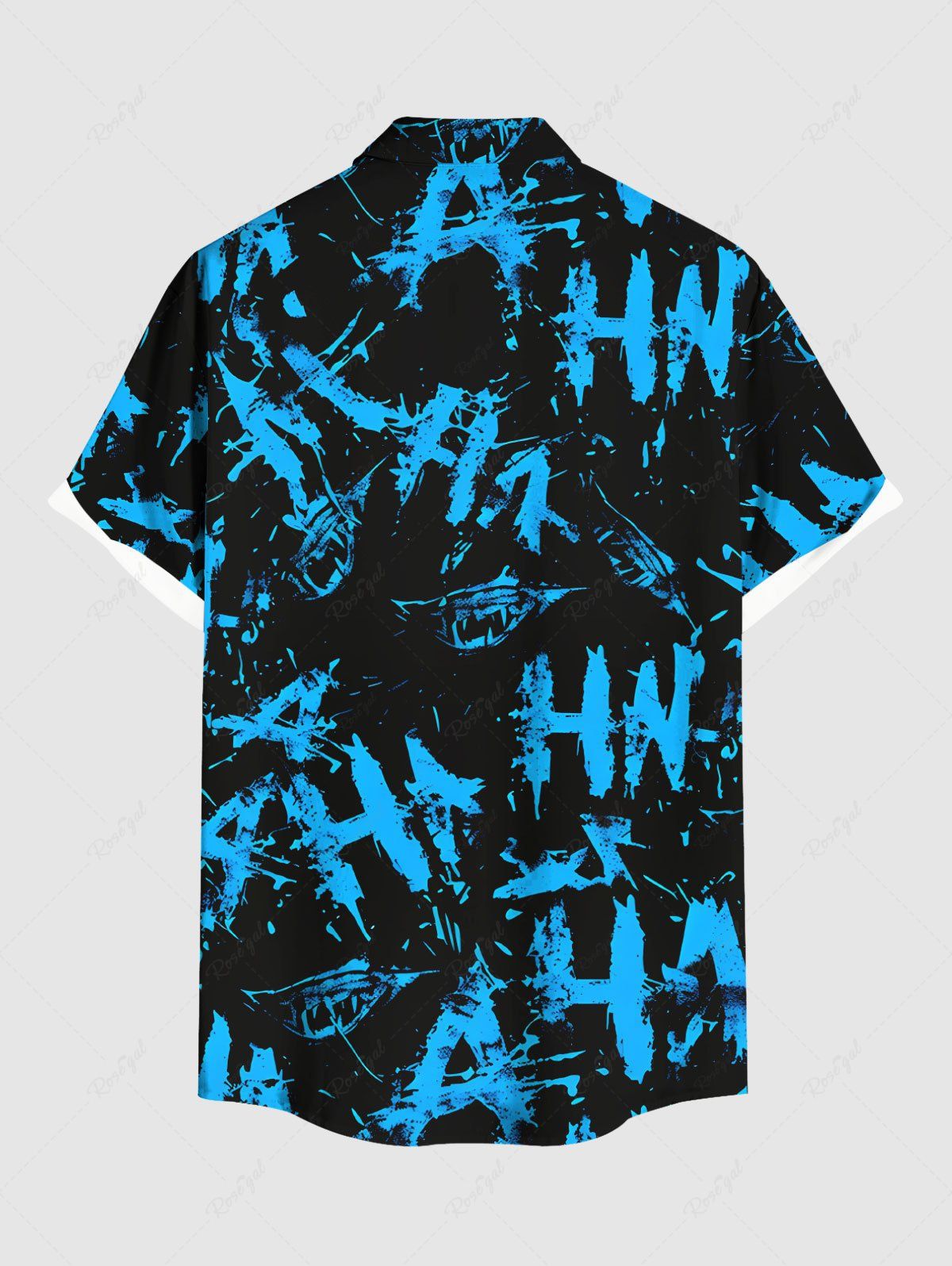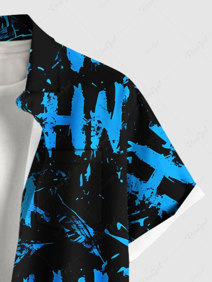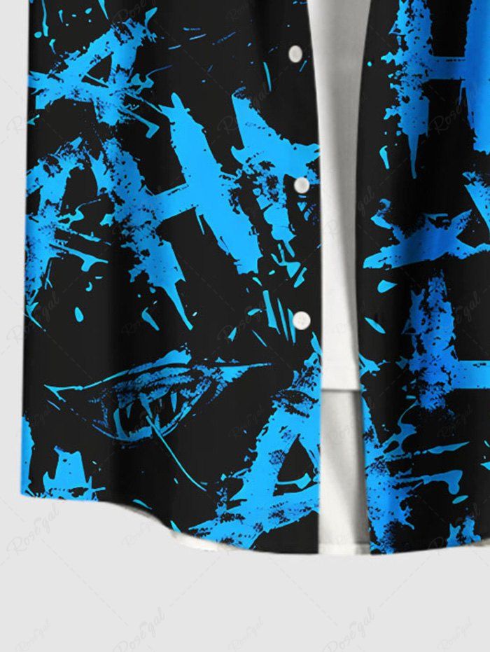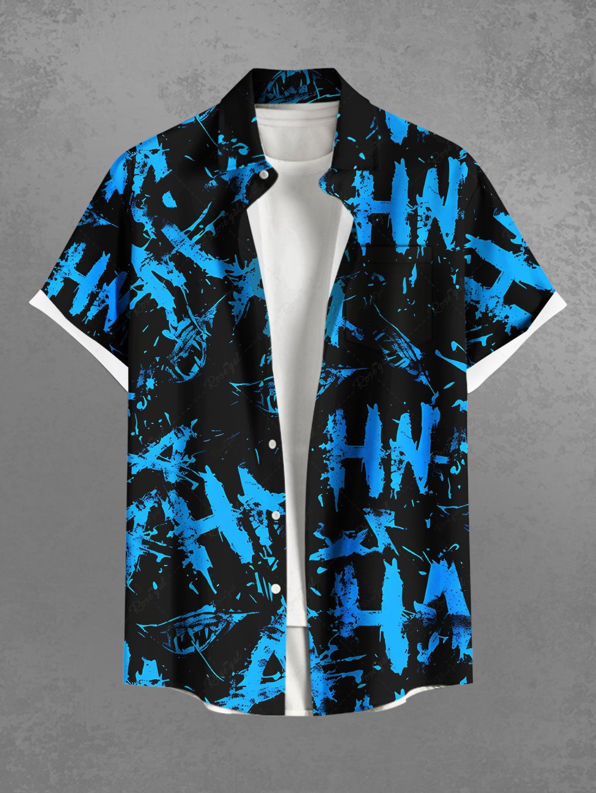 Gothic Plus Size Letters Graffiti Print Buttons Pocket Shirt For Men