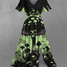 Gothic Plus Size Skulls Mushroom Print Split Pocket A Line Midi Dress