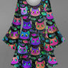 Gothic Plus Size Flare Sleeves Colorful Cat Fish Heart Print Ombre A Line Dress