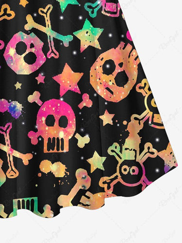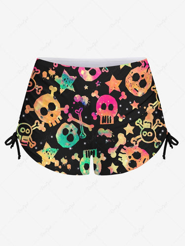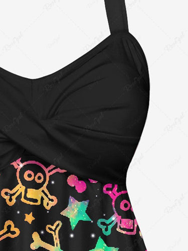 Gothic Plus Size Halter Twist Skulls Skeleton Star Print Cinched Boyleg Tankini Swimsuit