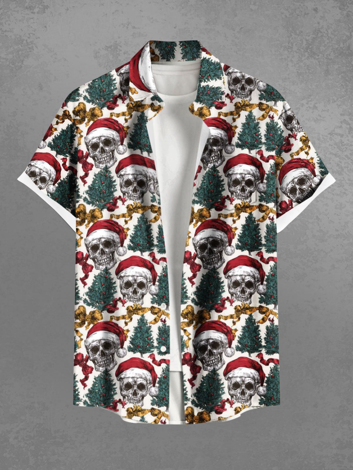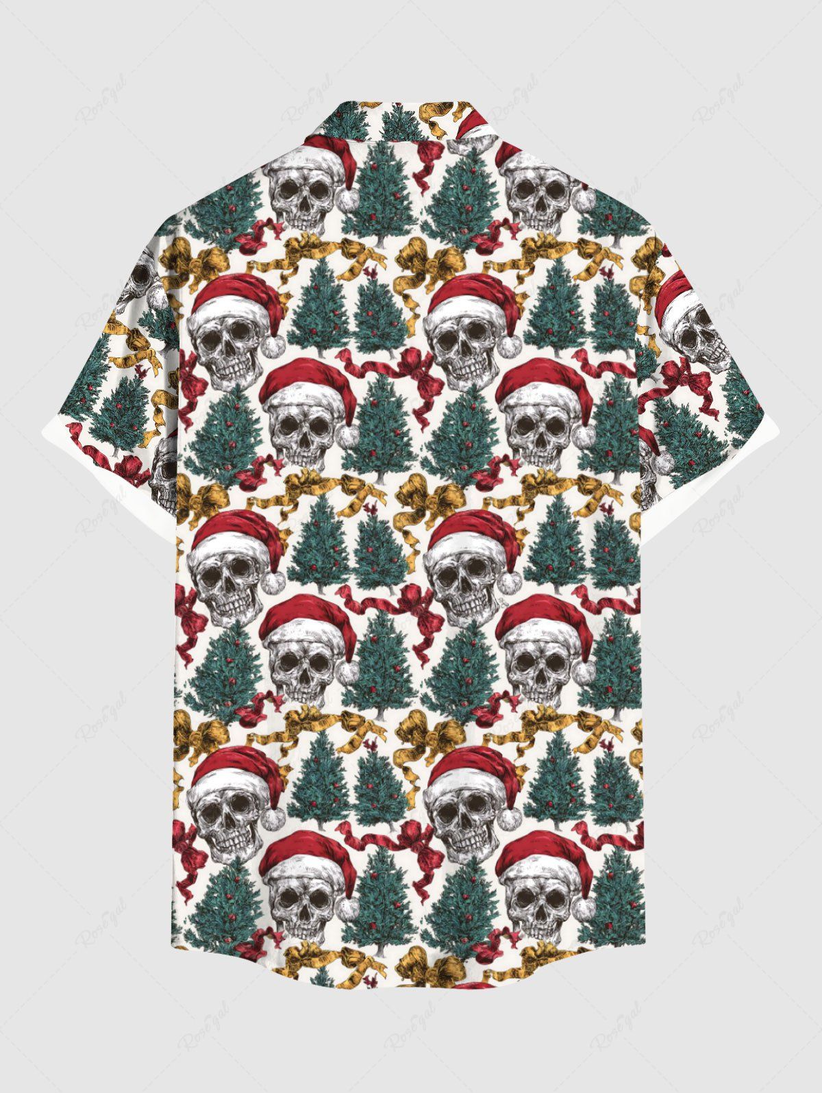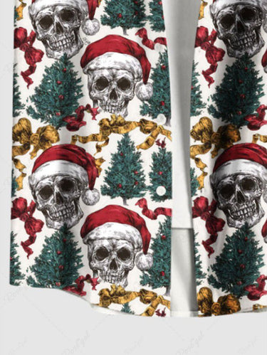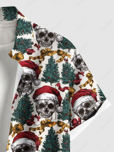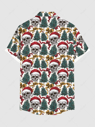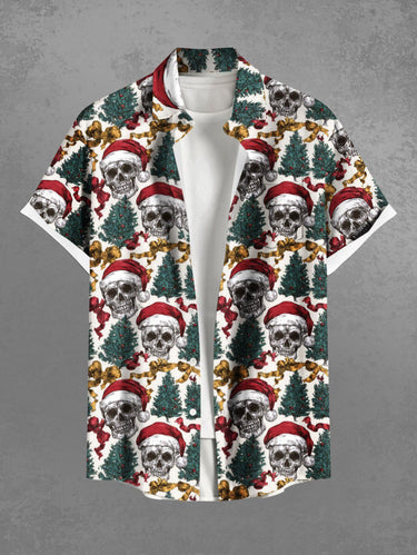 Gothic Plus Size Christmas Tree Hat Skull Bowknot Print Button Pocket Shirt For Men