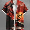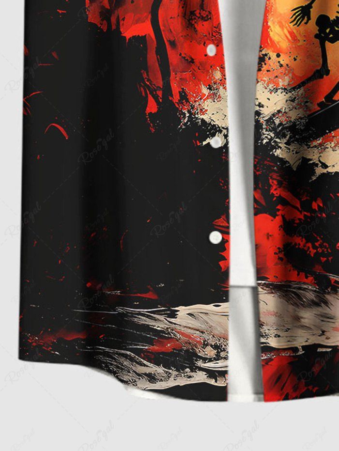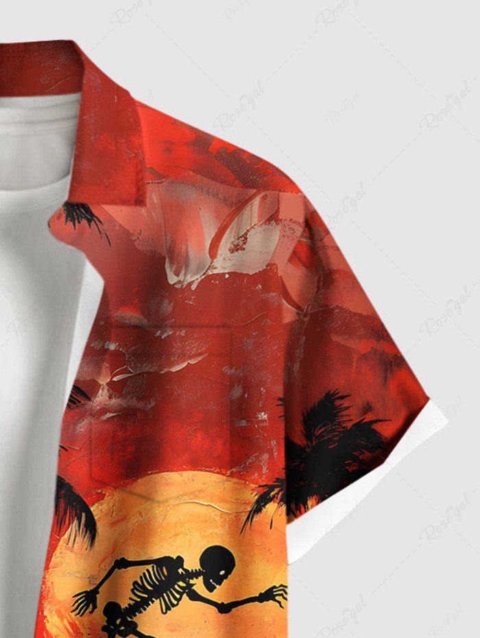 Gothic Plus Size Coconut Tree Sea Waves Skeleton Surfer Sun Print Hawaii Button Pocket Shirt For Men