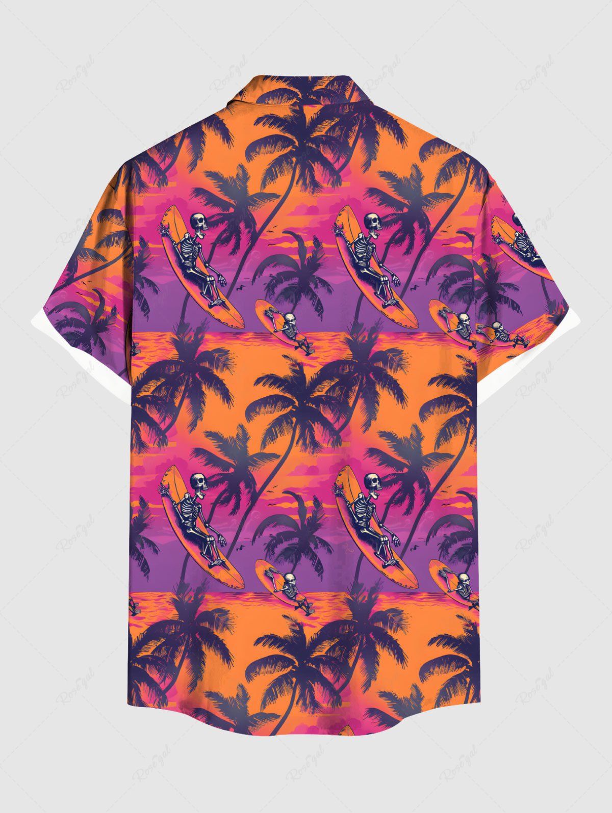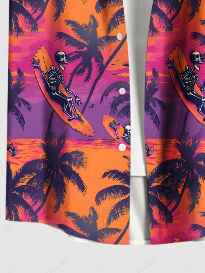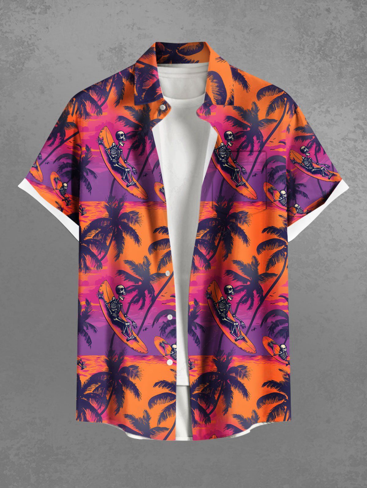 Gothic Plus Size Coconut Tree Skeleton Sea Print Hawaii Button Pocket Shirt For Men