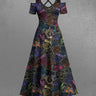 Gothic Plus Size Colorful Tarot Print Halloween Costume Crisscross A Line Maxi Dress