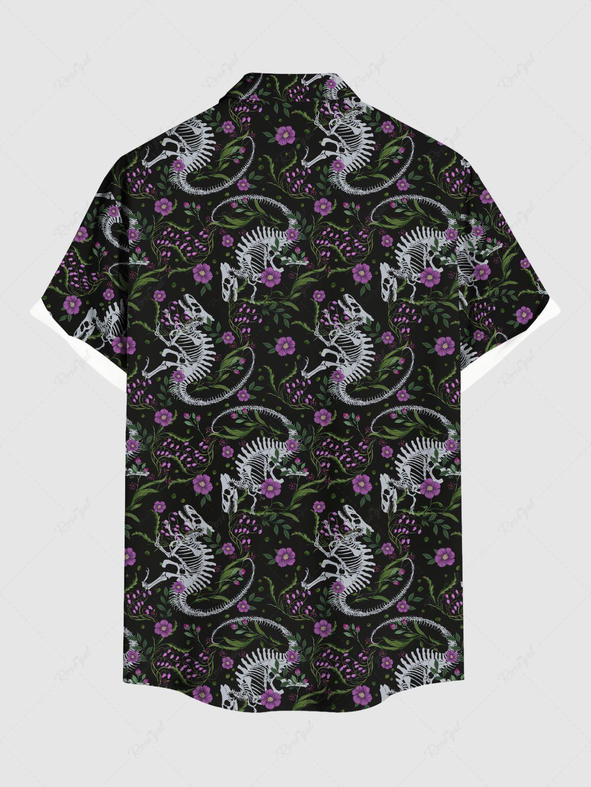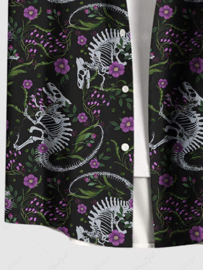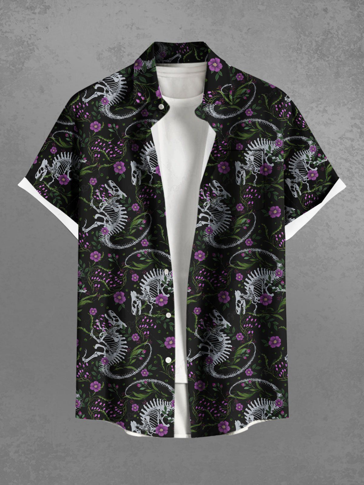 Gothic Plus Size Skeleton Dinosaur Flower Print Button Pocket Shirt For Men
