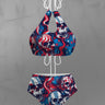 Gothic Patriotic American Flag Skulls Colorful Striped Stars Print Hollow Out Halter Backless Bikini Set