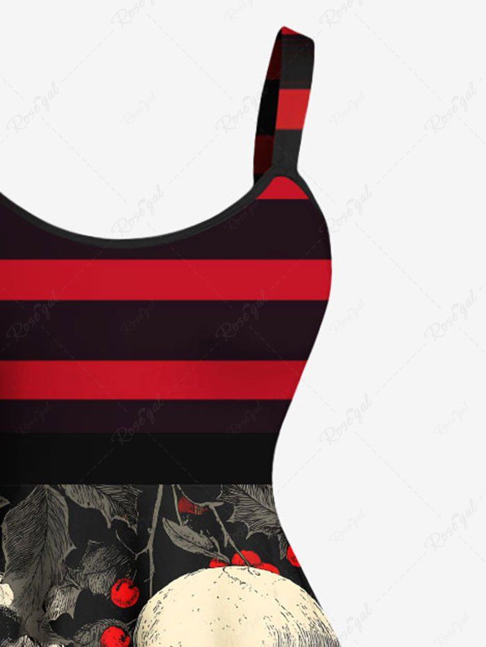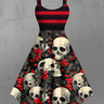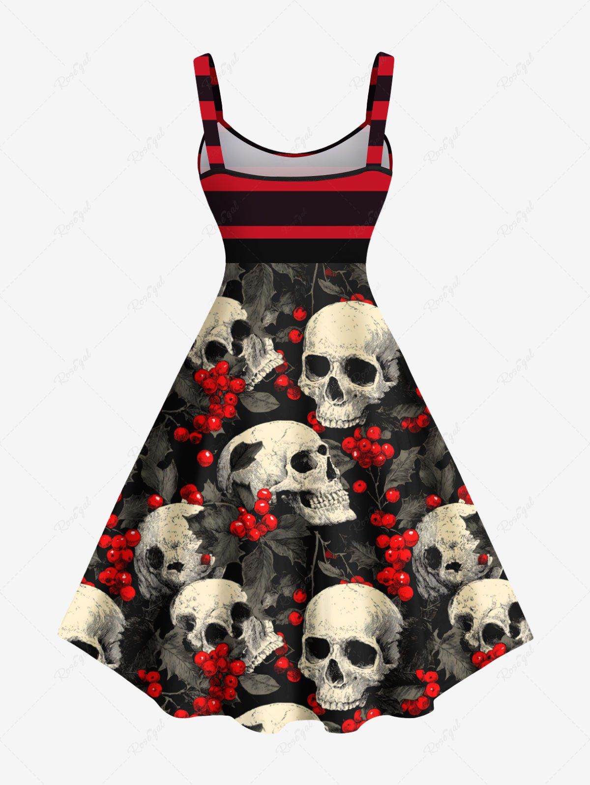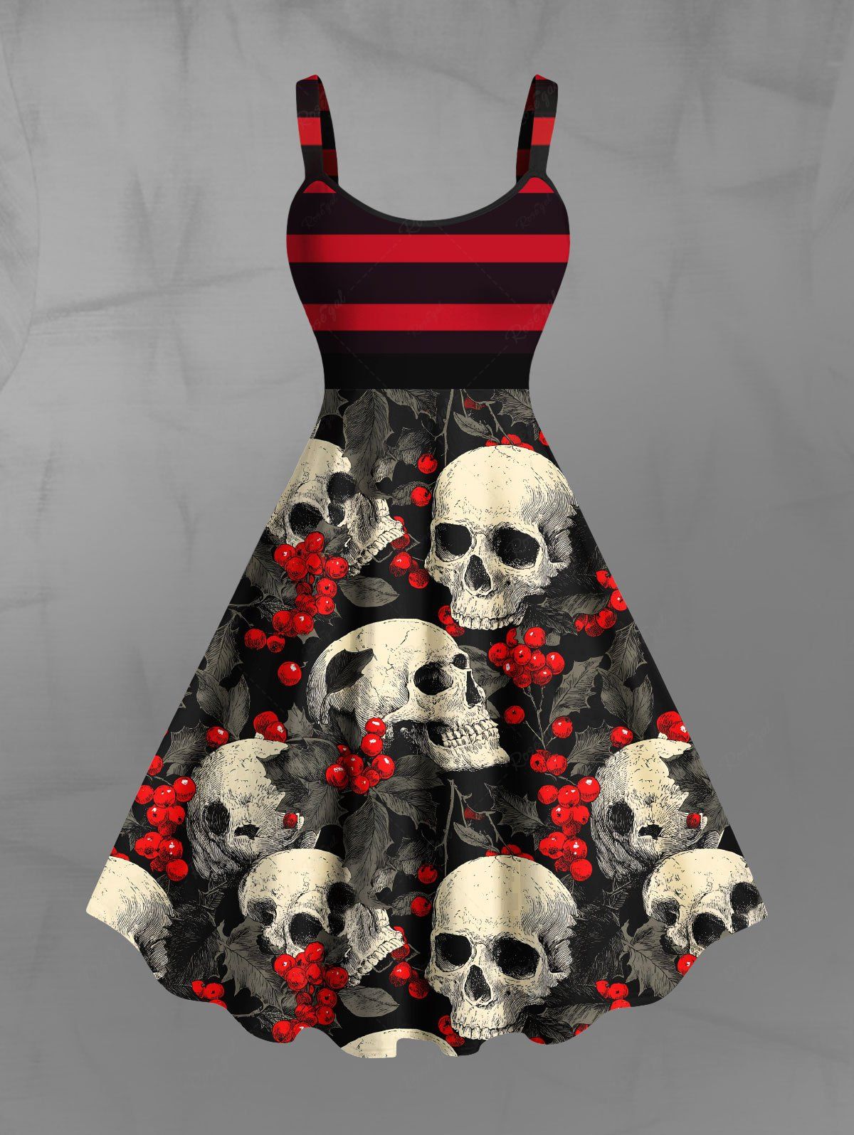 Gothic Plus Size Christmas Holly Leaf Skull Striped Print A Line Dress