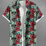 Gothic Plus Size Skull Tropical Leaf Hibiscus Flower Print Hawaii Button Pocket Shirt For Men