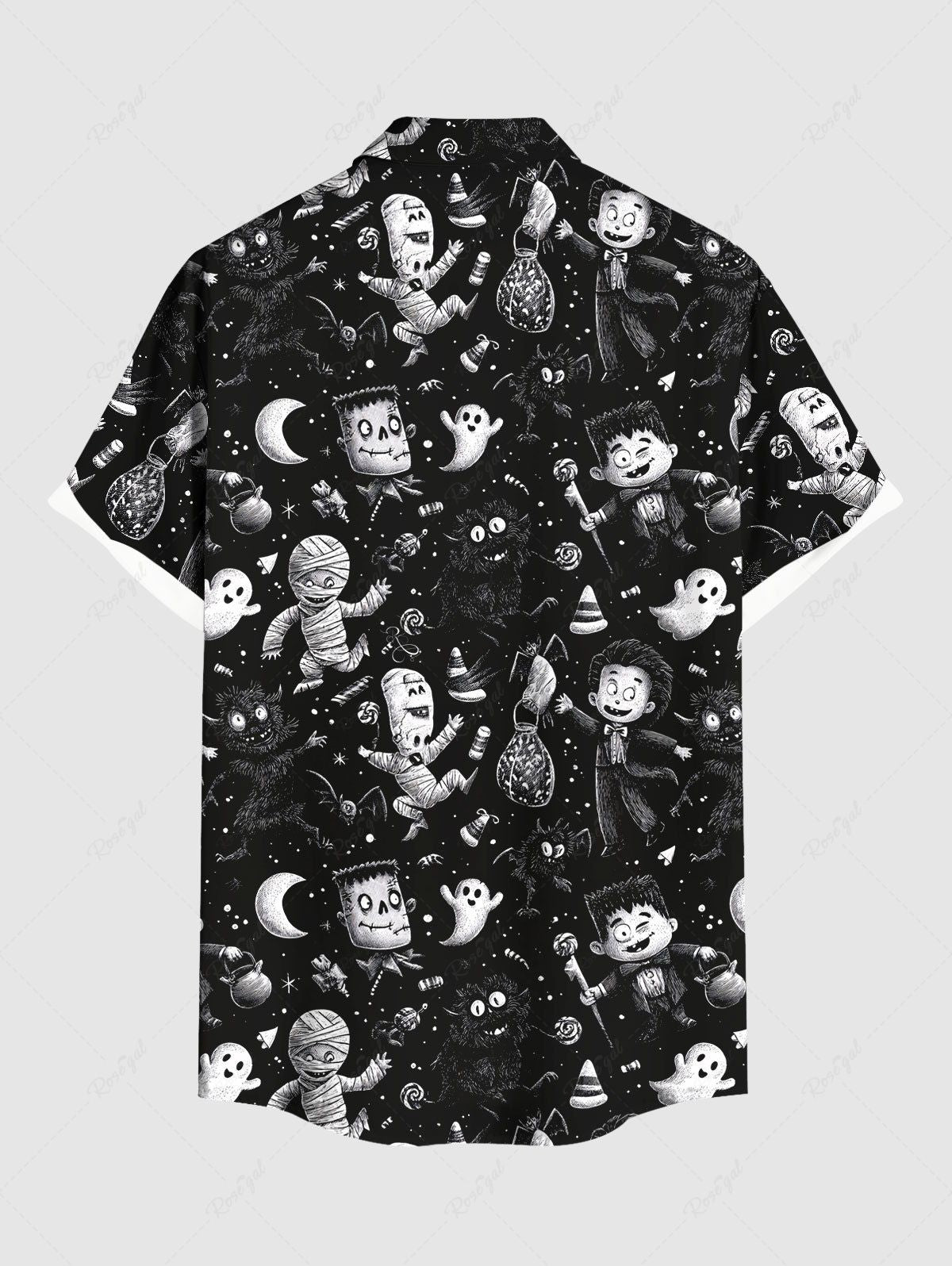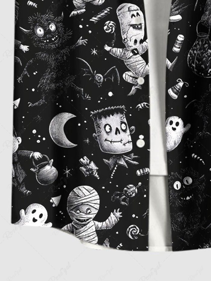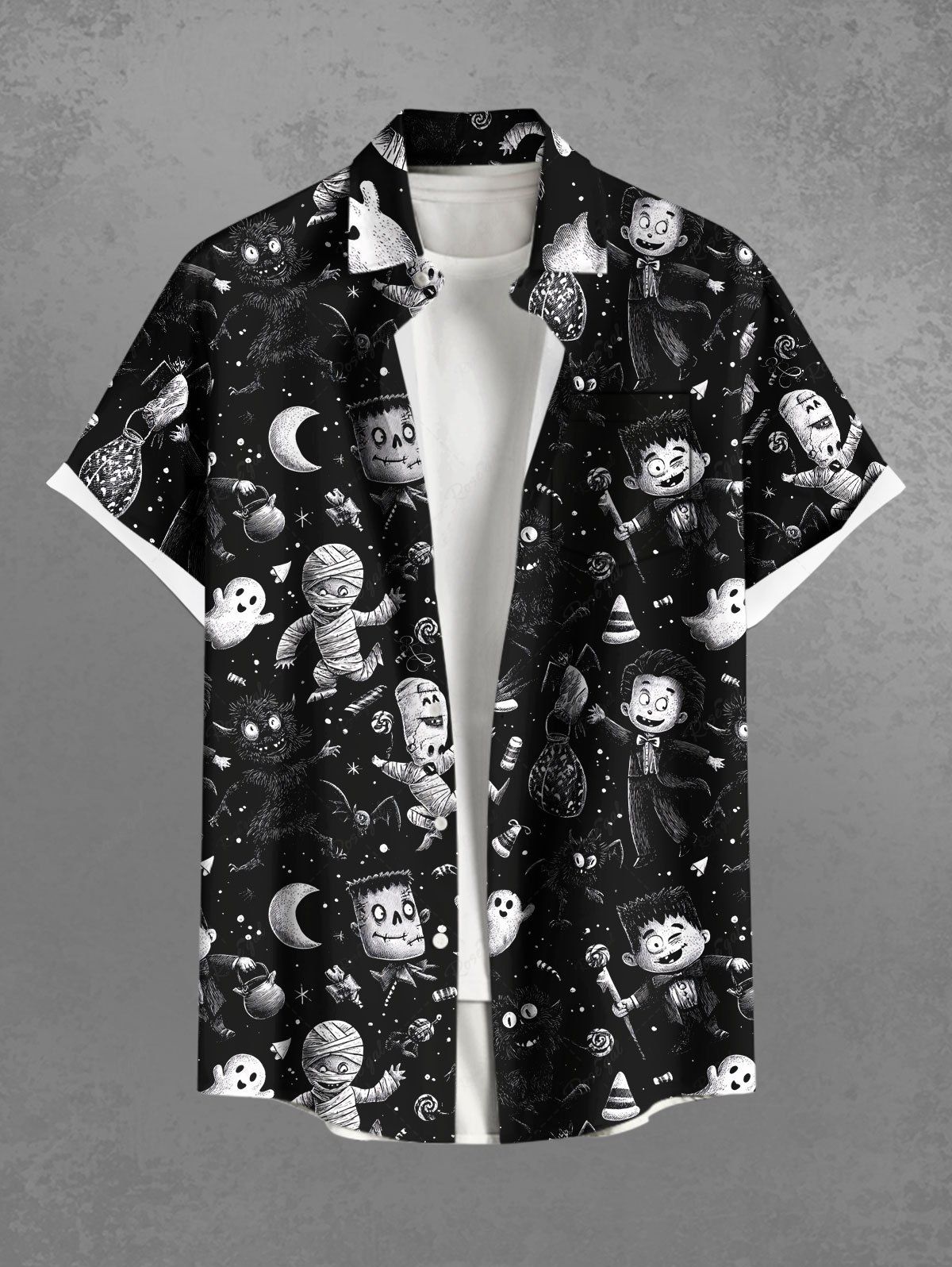 Gothic Plus Size Halloween Ghost Moon Mummy Print Buttons Pocket Shirt For Men