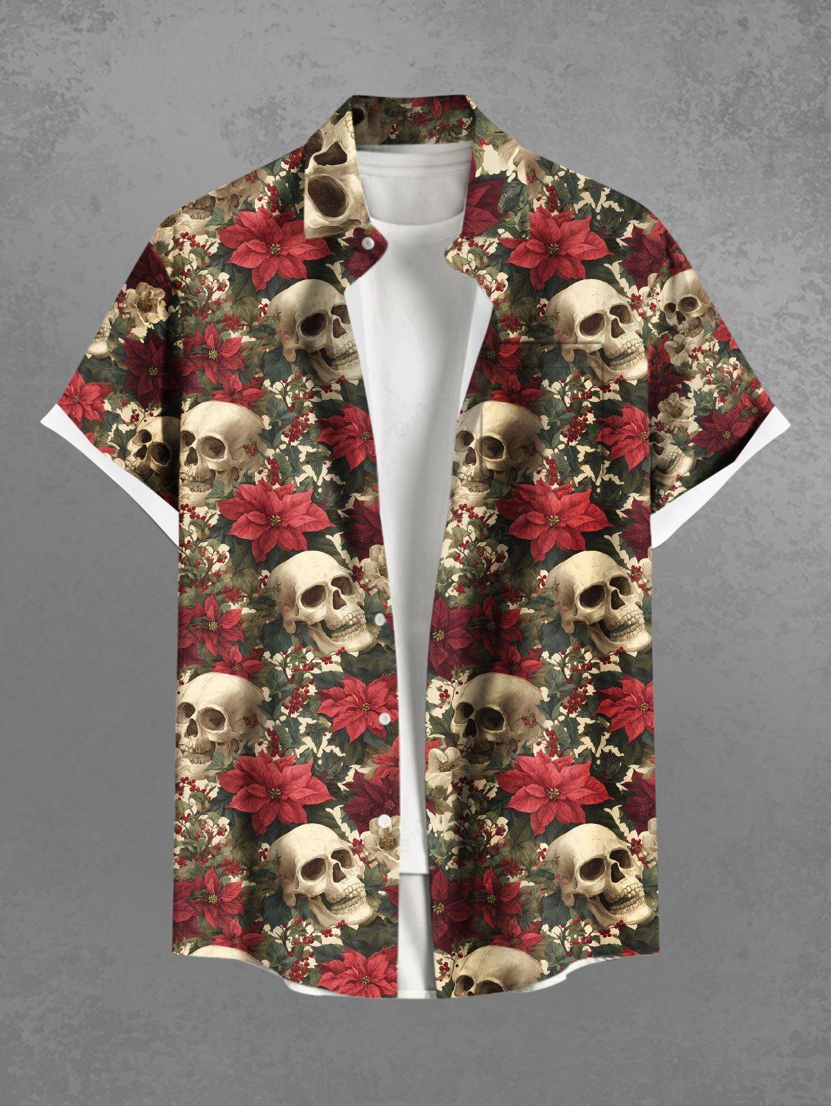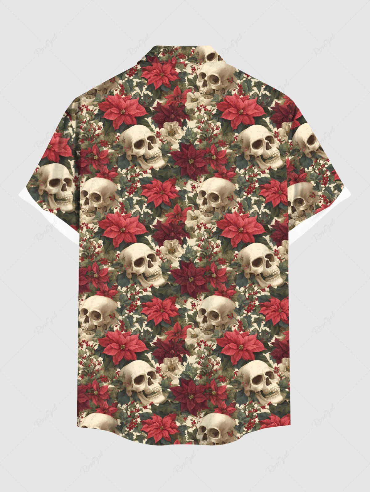 Gothic Plus Size Skull Flower Print Button Pocket Shirt For Men