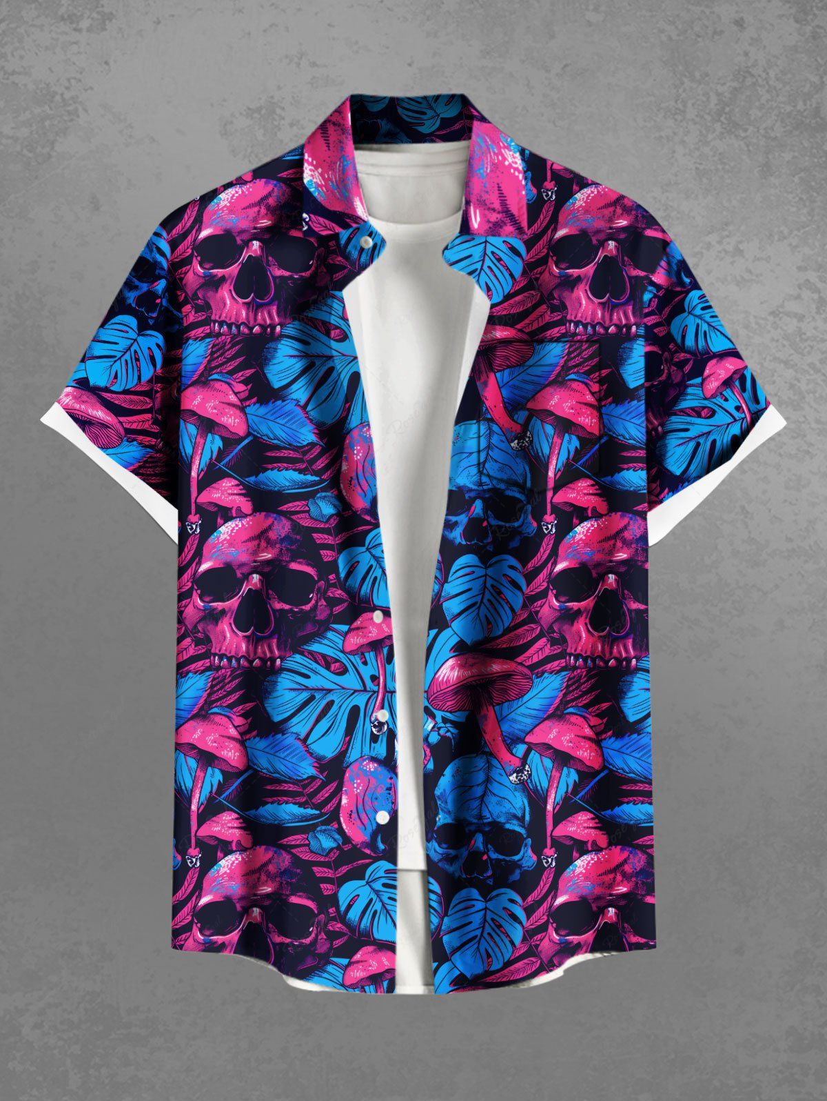 Gothic Plus Size Skull Mushroom Tropical Leaf Print Button Pocket Shirt For Men