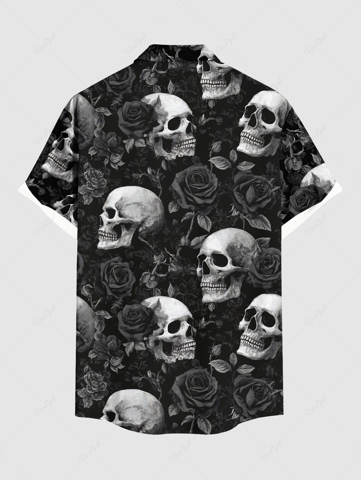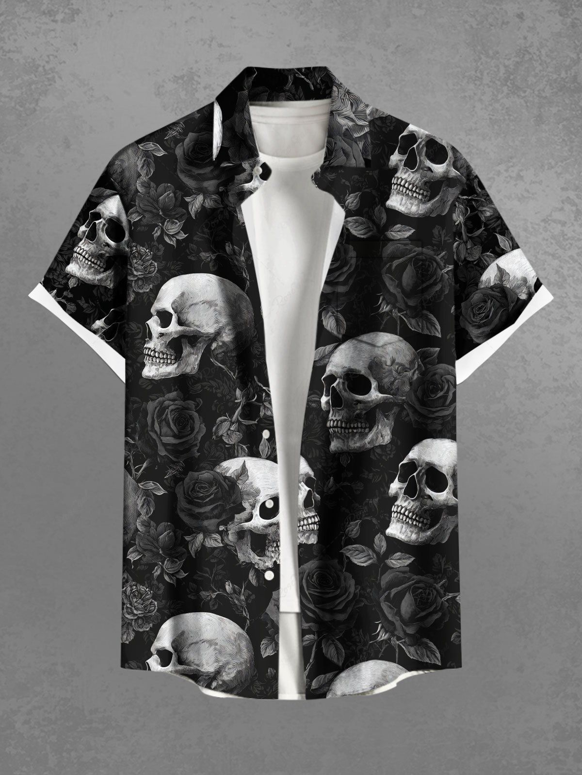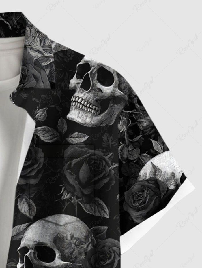 Gothic Plus Size Skull Rose Flower Print Button Pocket Shirt For Men