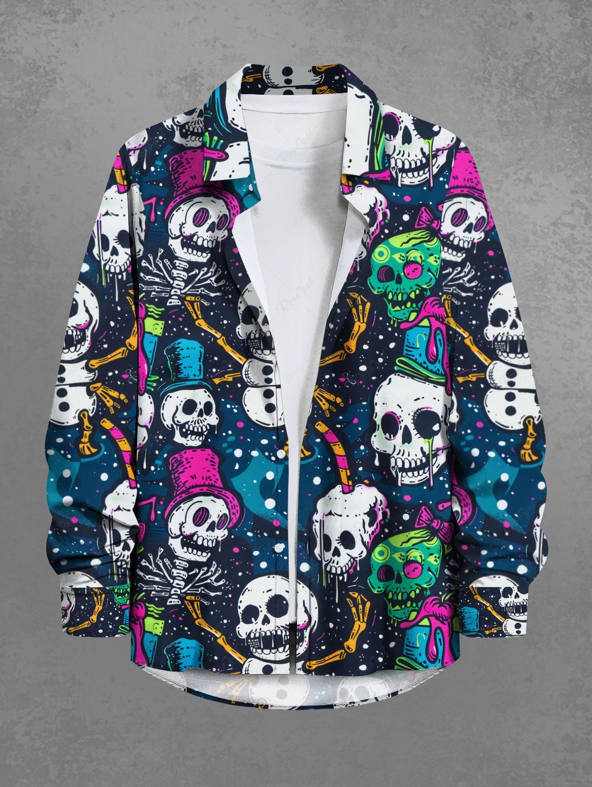 Gothic Plus Size Skulls Hat Bowknot Paint Splatter Print Buttons Pocket Long Sleeve Shirt For Men