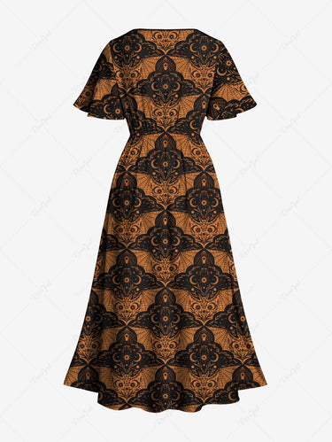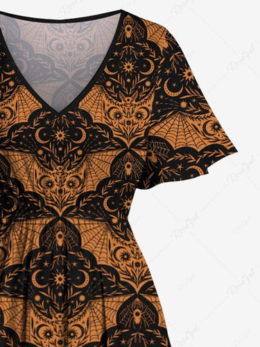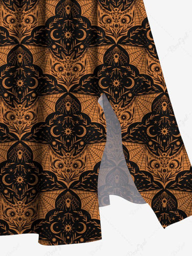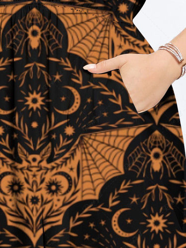 Gothic Plus Size Bat Colorblock Print Halloween Costume Split Pocket A Line Midi Dress