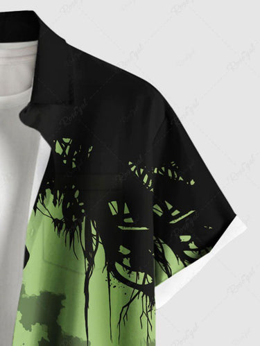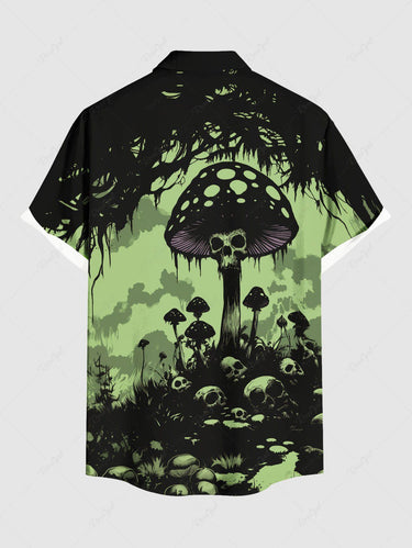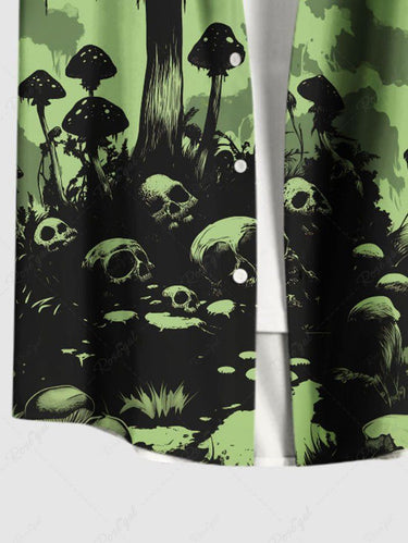 Gothic Plus Size Skulls Mushroom Print Button Pocket Shirt For Men