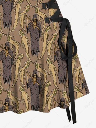 Gothic Skull Wizard Ghost Print Lace Up A Line Tank Dress