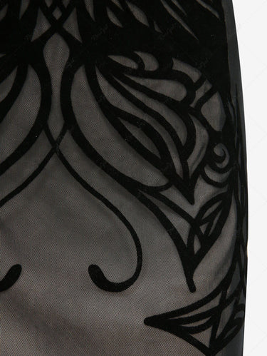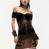 Gothic Off The Shoulder Velvet Curve Pattern Flocking Dress