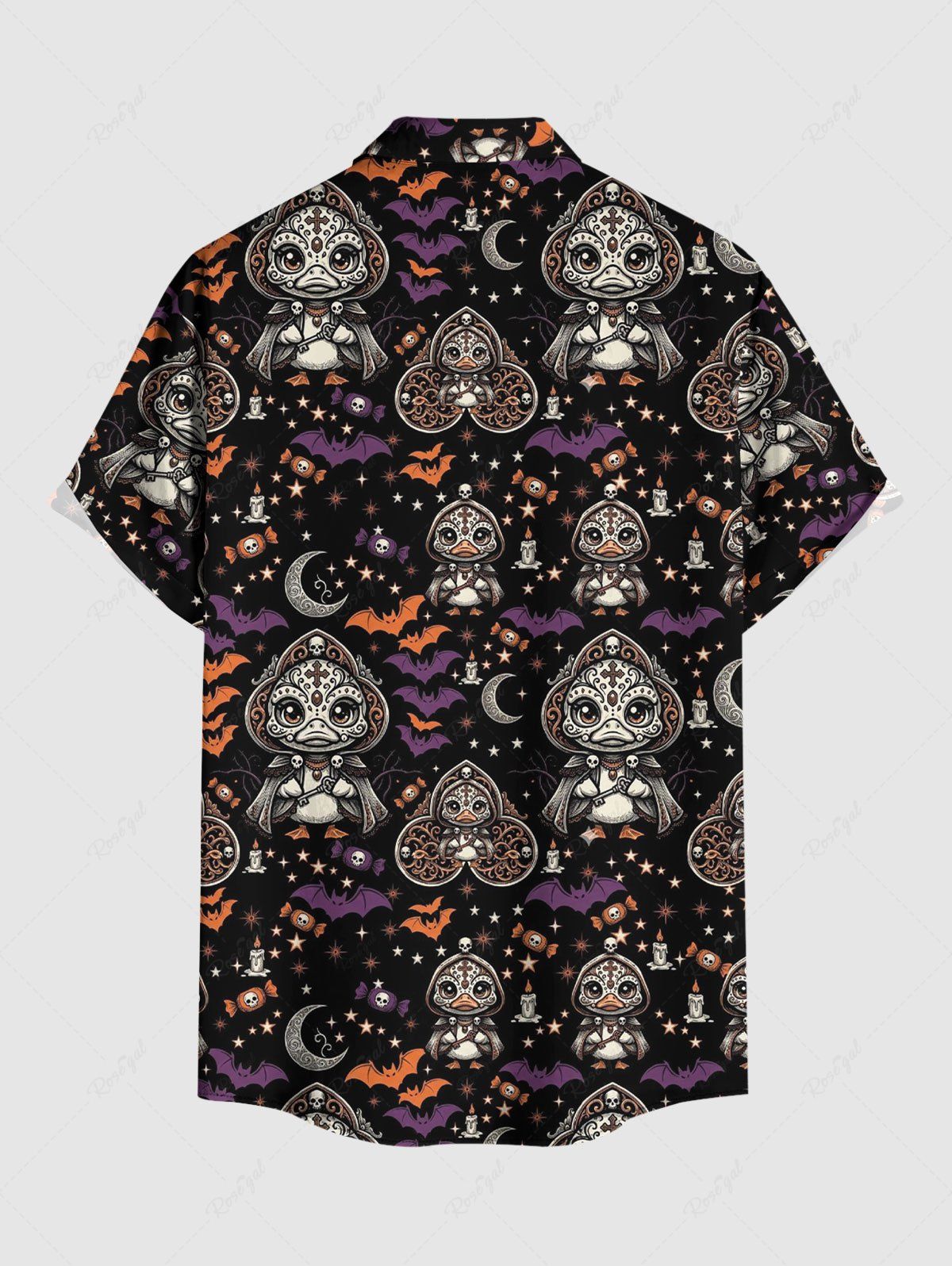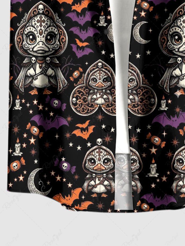 Gothic Plus Size Duck Bat Moon Star Print Button Pocket Shirt For Men