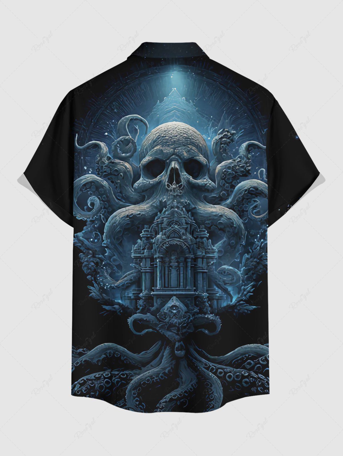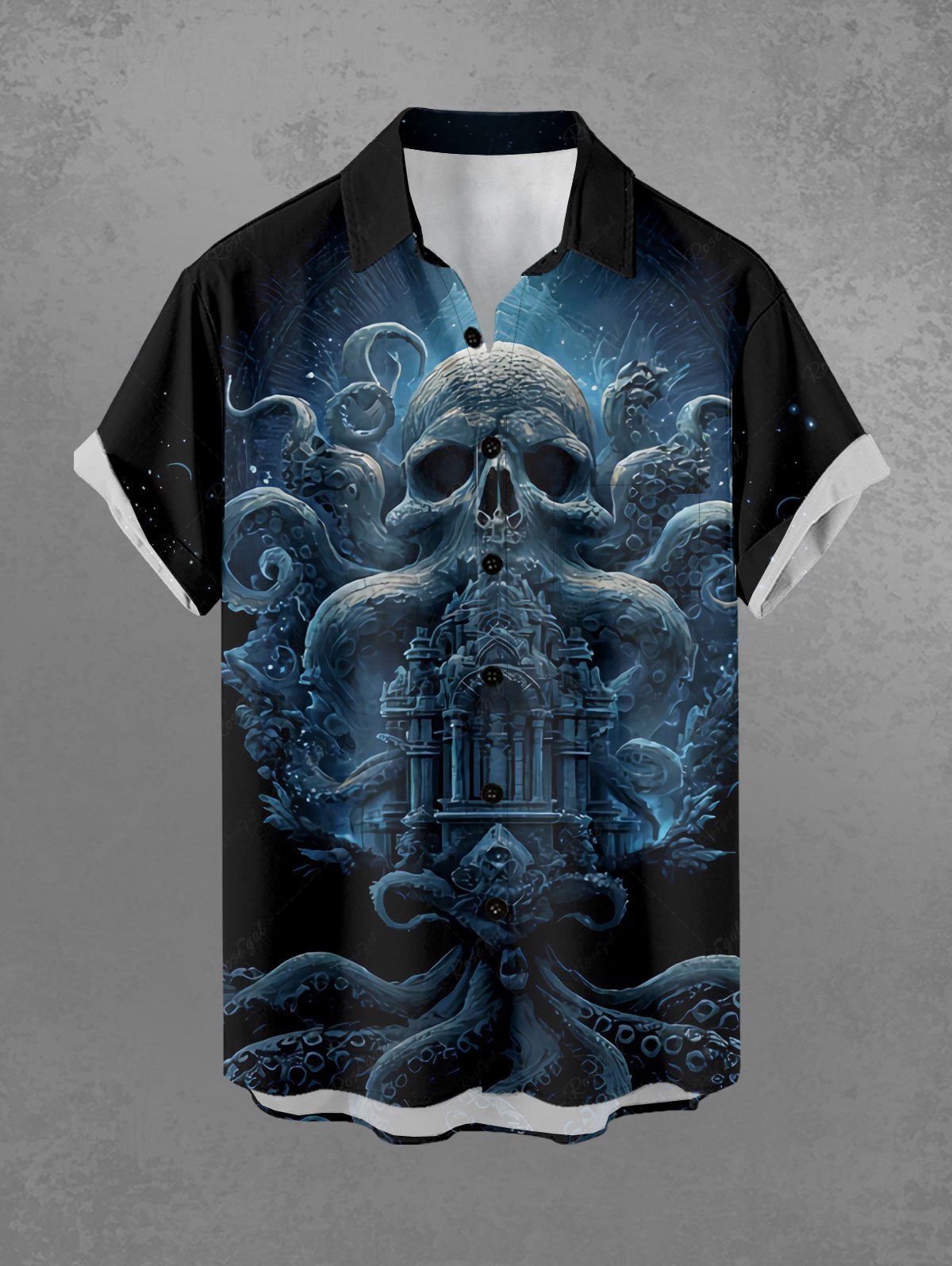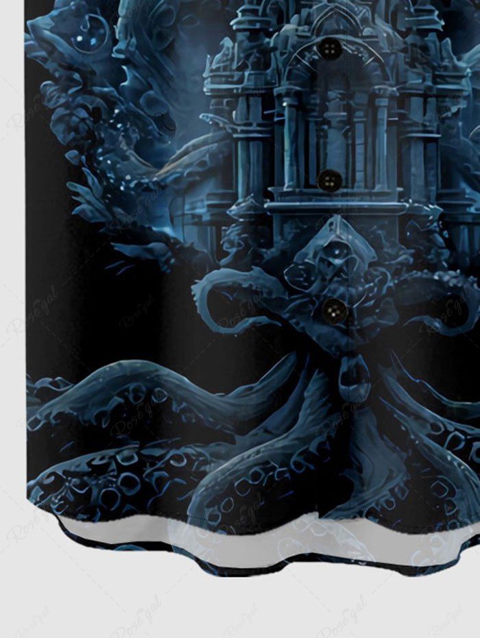 Gothic Plus Size Skull Octopus Palace Print Button Pocket Shirt For Men
