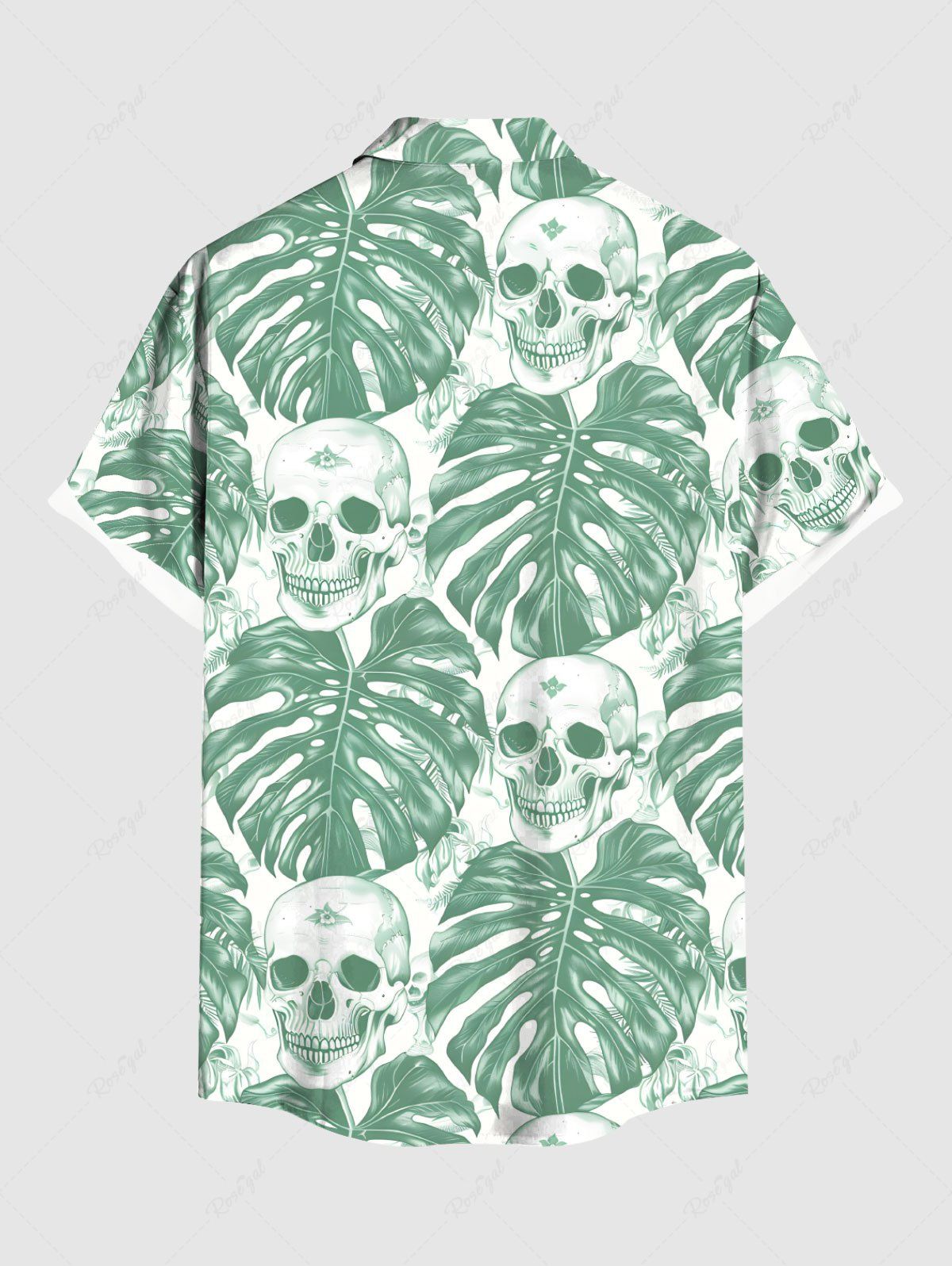 Gothic Plus SizeTropical Leaf Skull Print Hawaii Button Pocket Shirt For Men