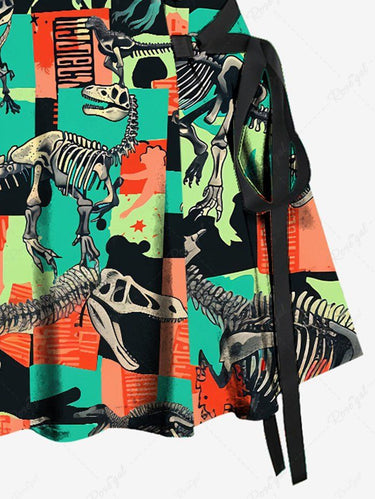Gothic Dinosaur Colorblock Print Lace Up Backless A Line Tank Dress