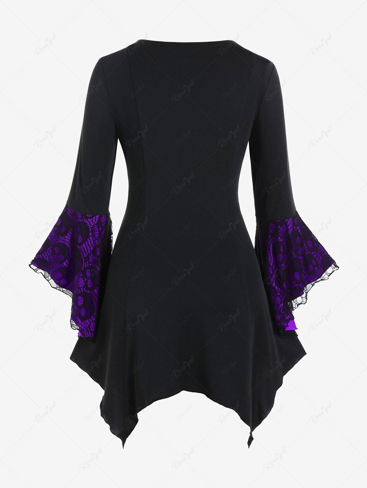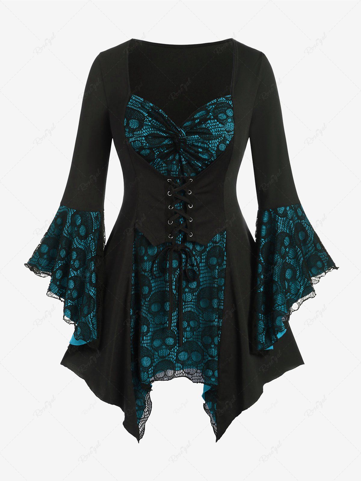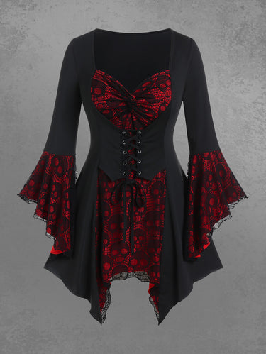 Halloween Vampire Costume Gothic Plus Size Bell Sleeve Skull Lace Handkerchief Long Sleeve Blouse Top