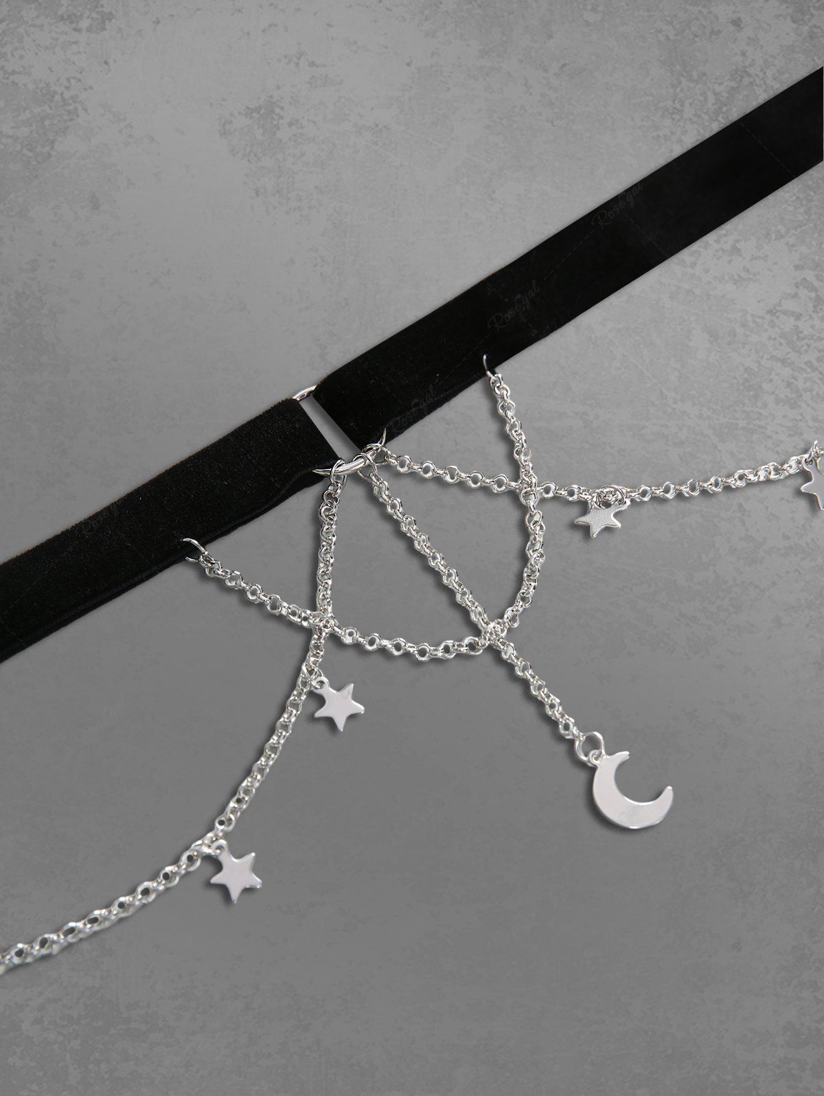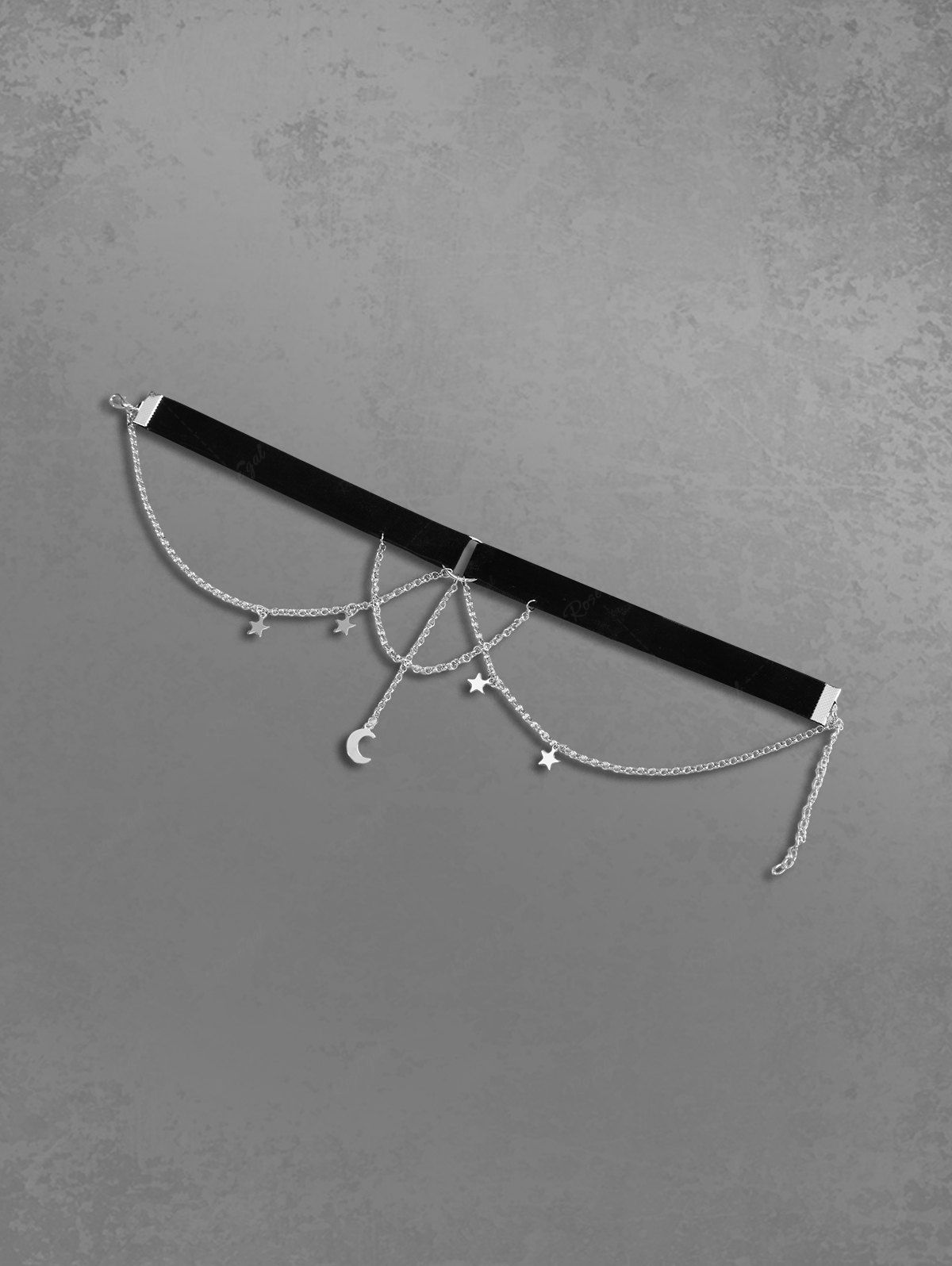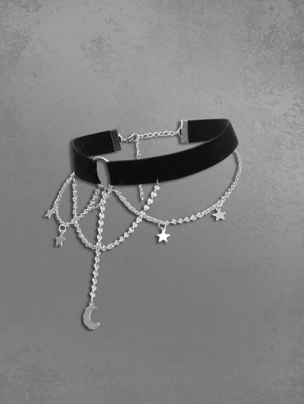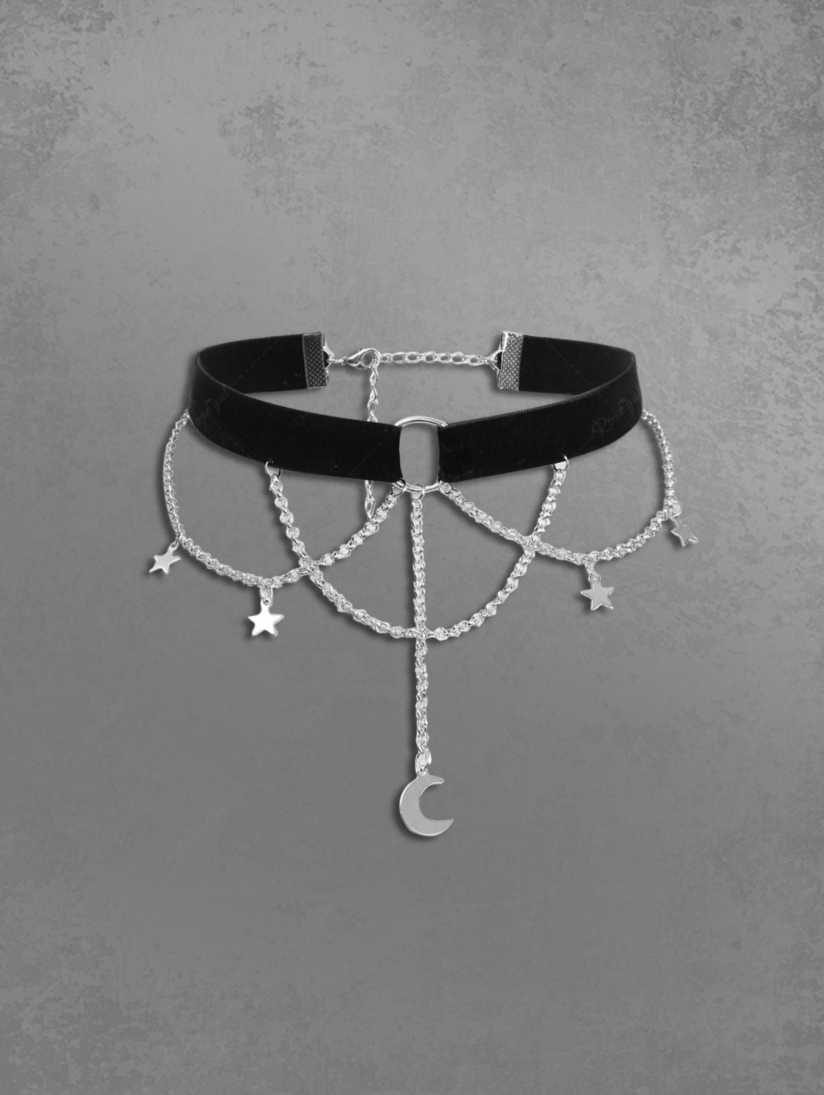 Chains O-ring Moon Shaped Pendant Choker Necklace