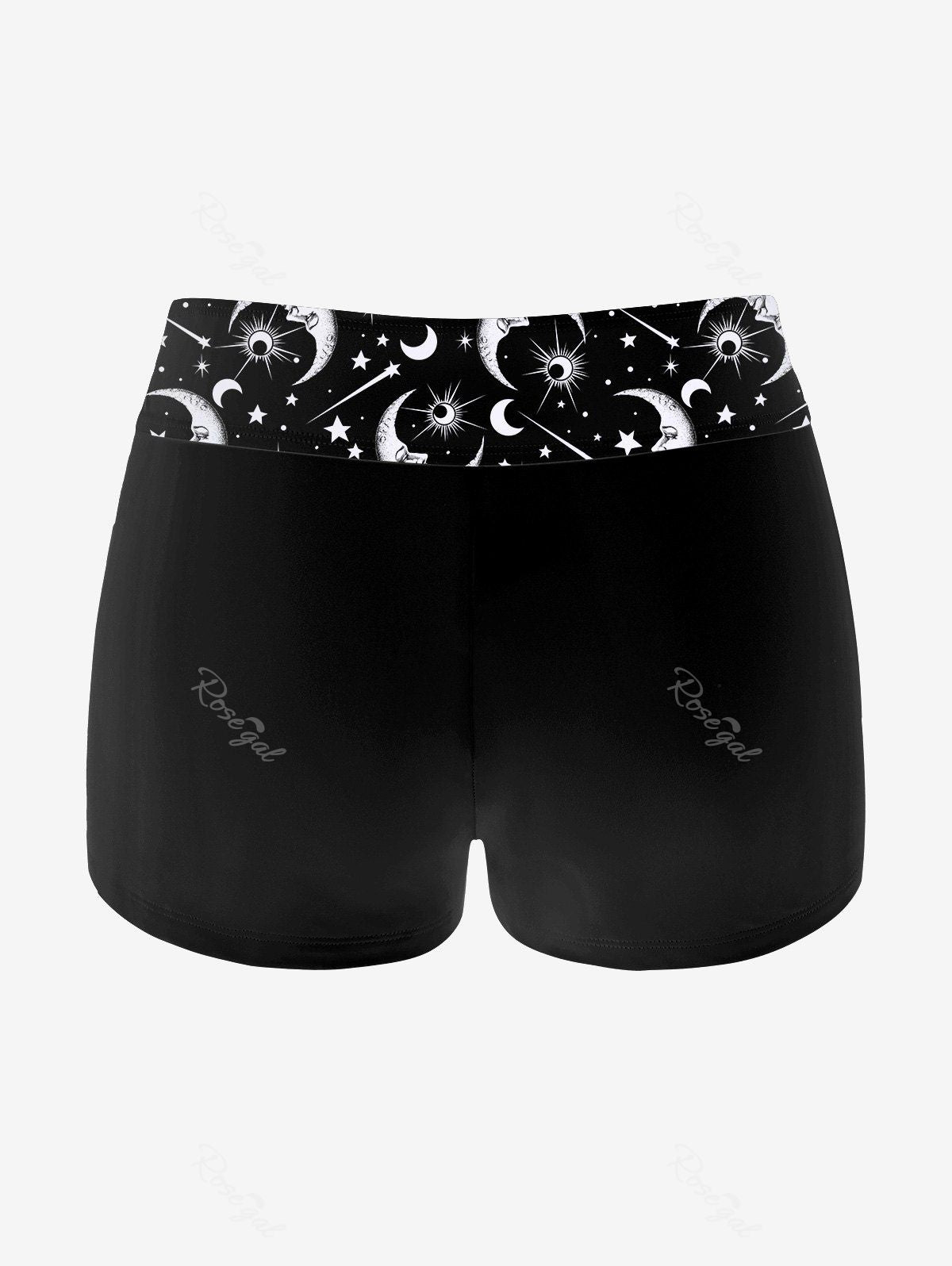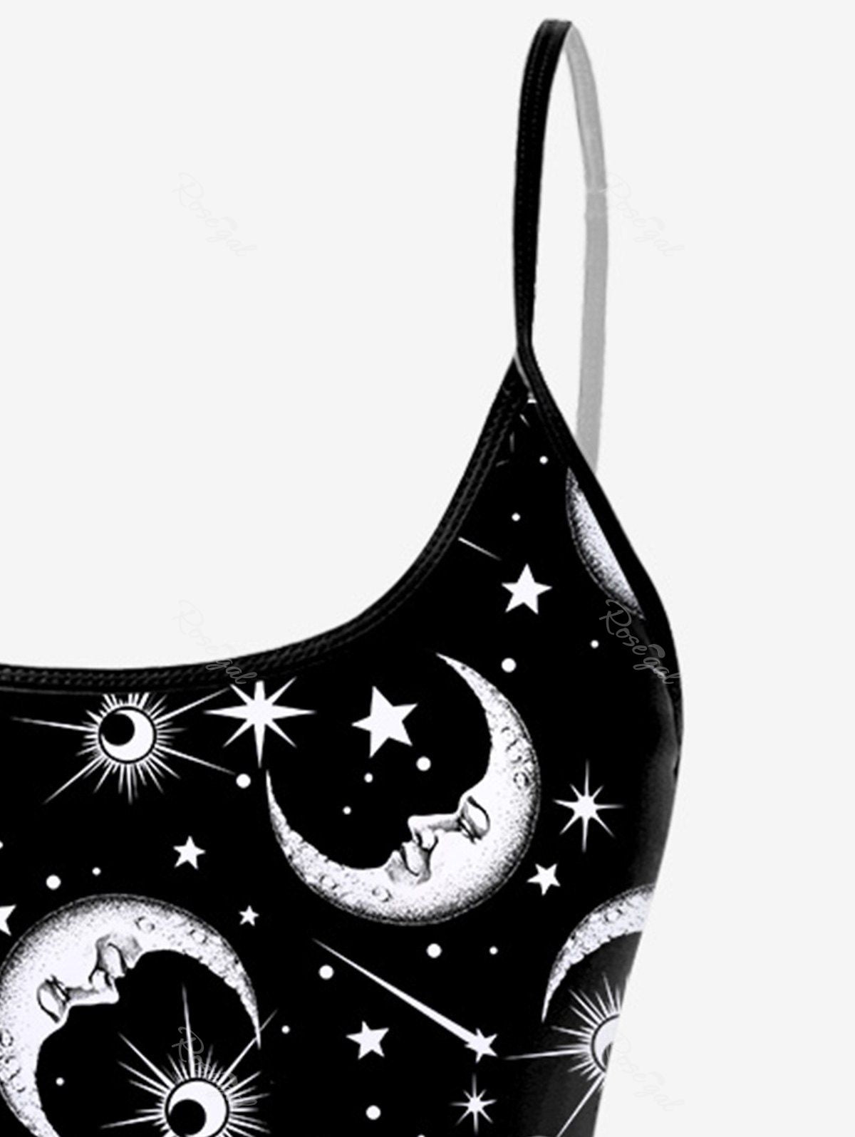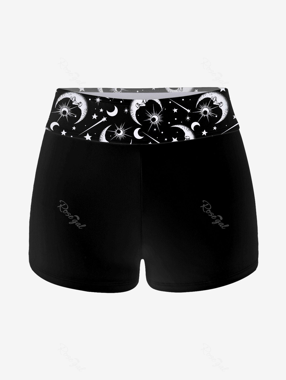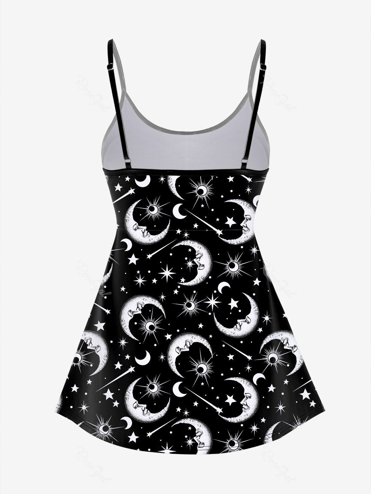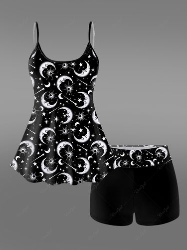 Gothic Plus Size 3D Moon Star Glitter Print Boyleg Tankini Swimsuit (Adjustable Shoulder Strap)